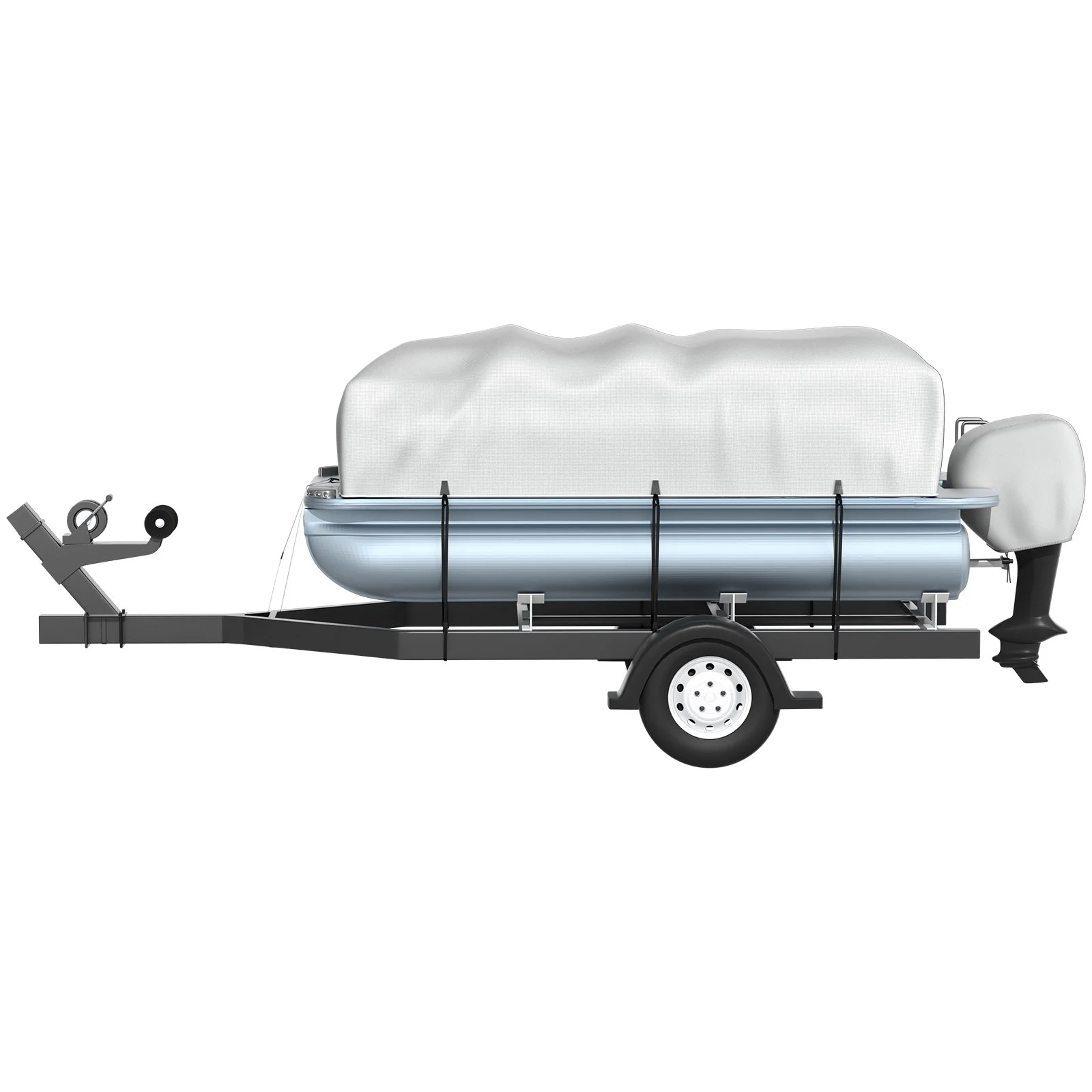 The trailer-compatible boat cover is equipped with 7 quick-release buckles, so you can quickly and easily complete installation. 7 adjustable straps will lock your boat cover tightly, protecting the boat cover from blowing off in the heavy wind.