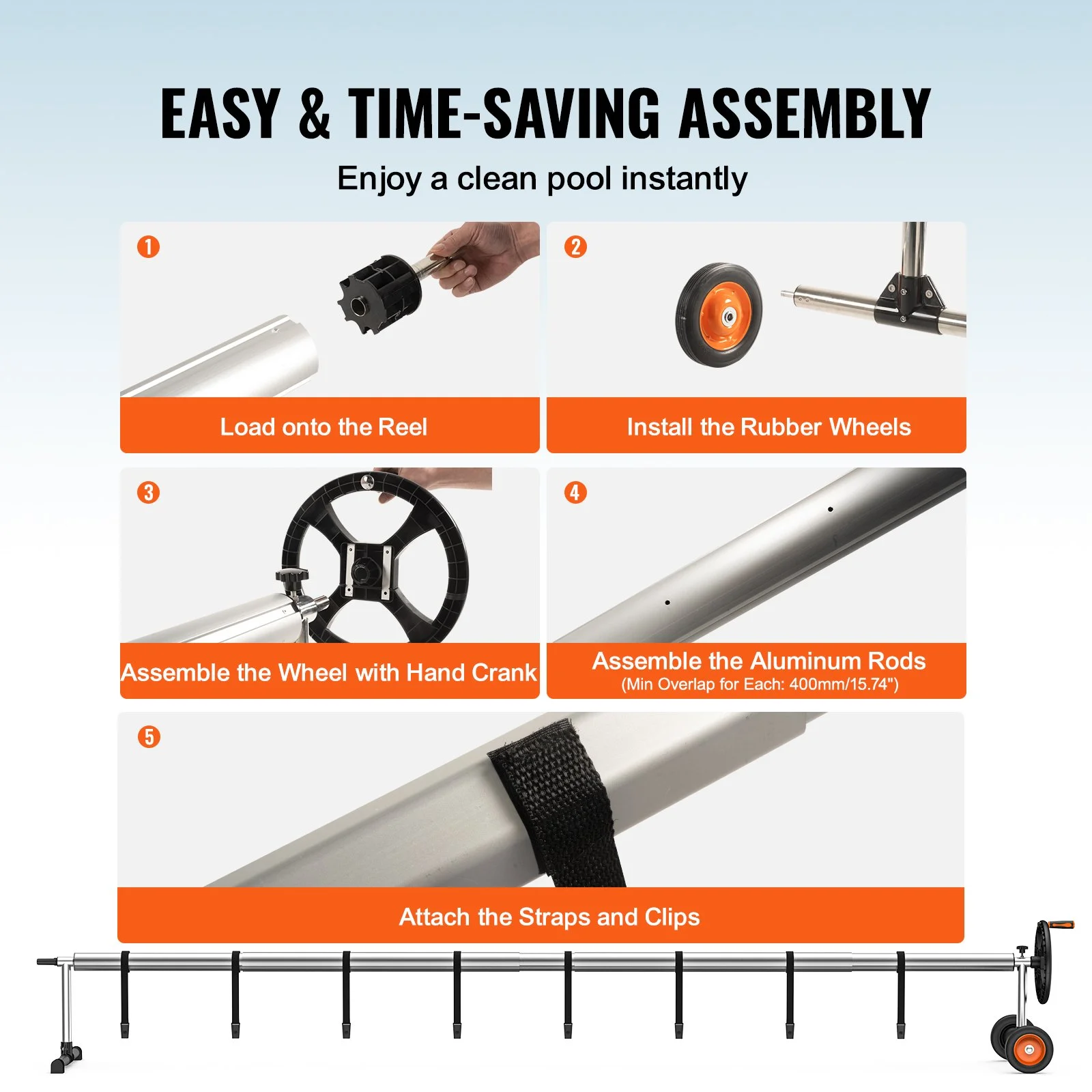 With a wide adjustment range from 3.55-5.66 m/11.64-18.56 ft, our solar pool cover reel perfectly fits for inground swimming pools of various sizes. Whether you have a standard or custom-sized pool, our reel eliminates sizing concerns and offers a hassle-free solution.