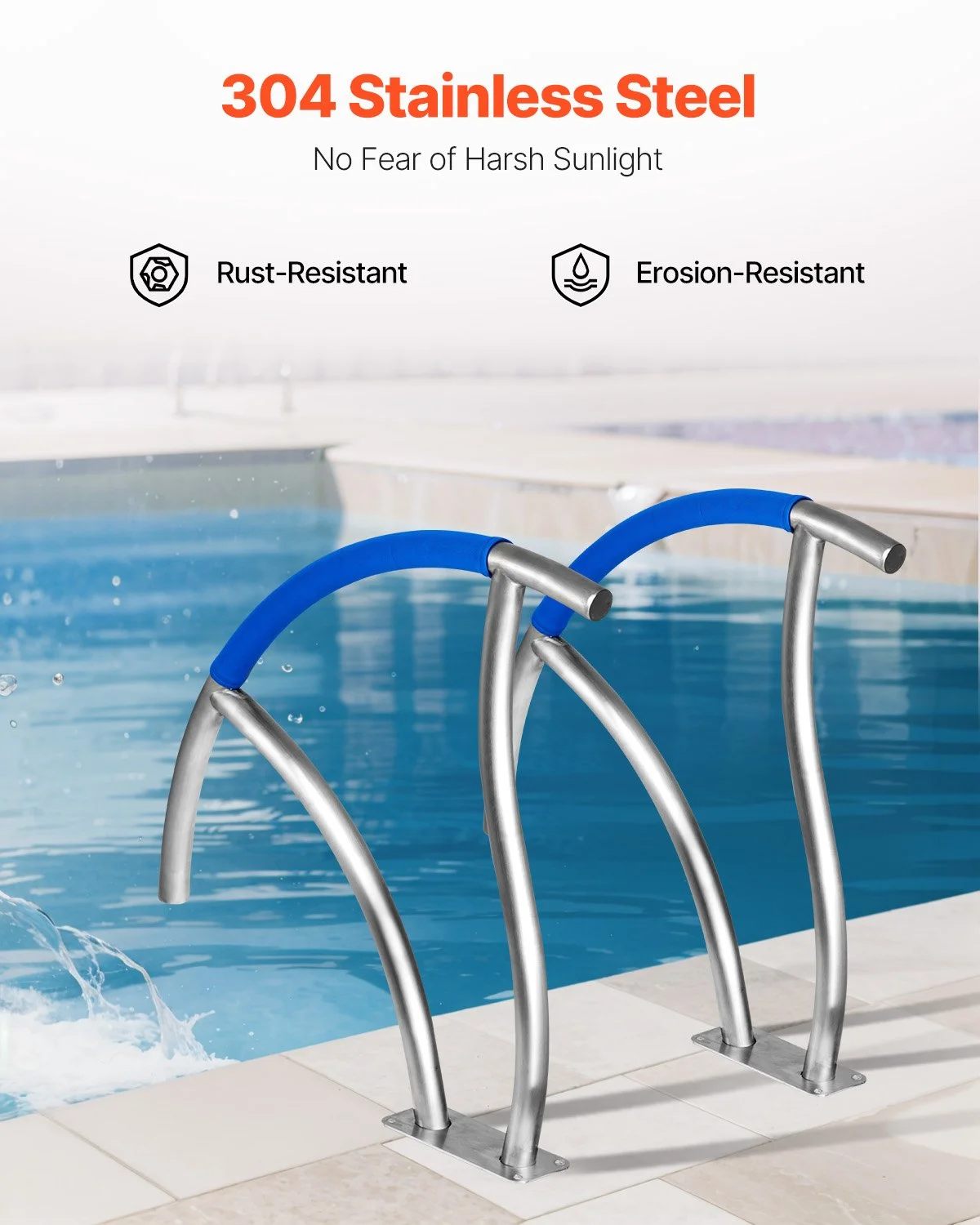For saltwater pools, choose 316 stainless steel or other materials. This rail may have a potential risk of rusting. Use a blue Scotch Brite pad to clean rust spots