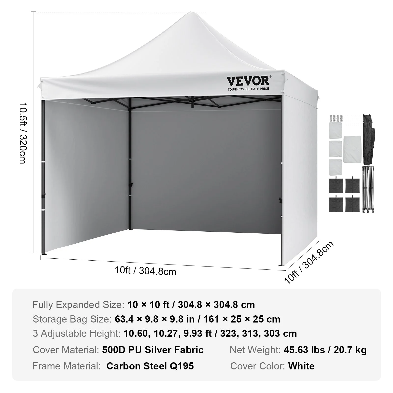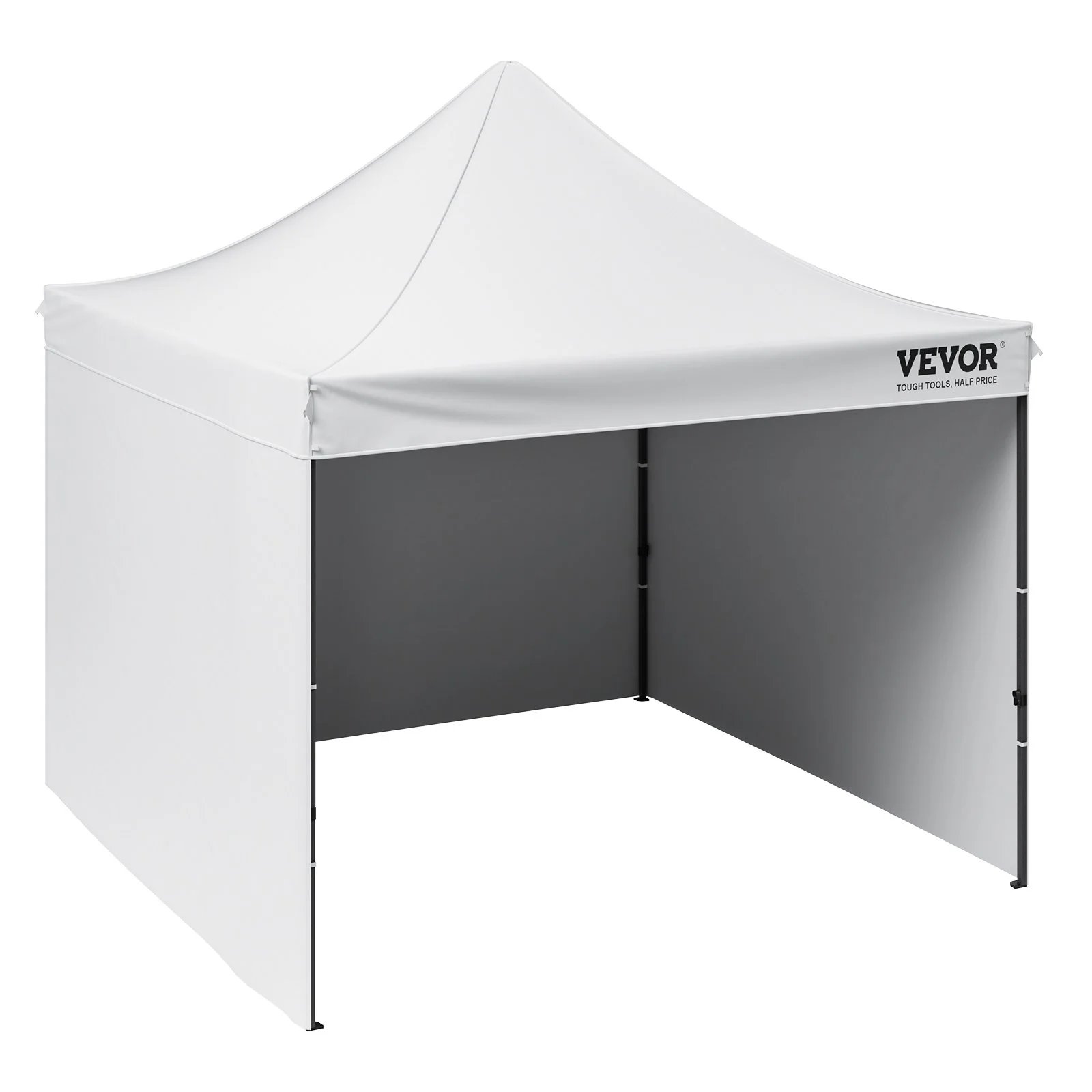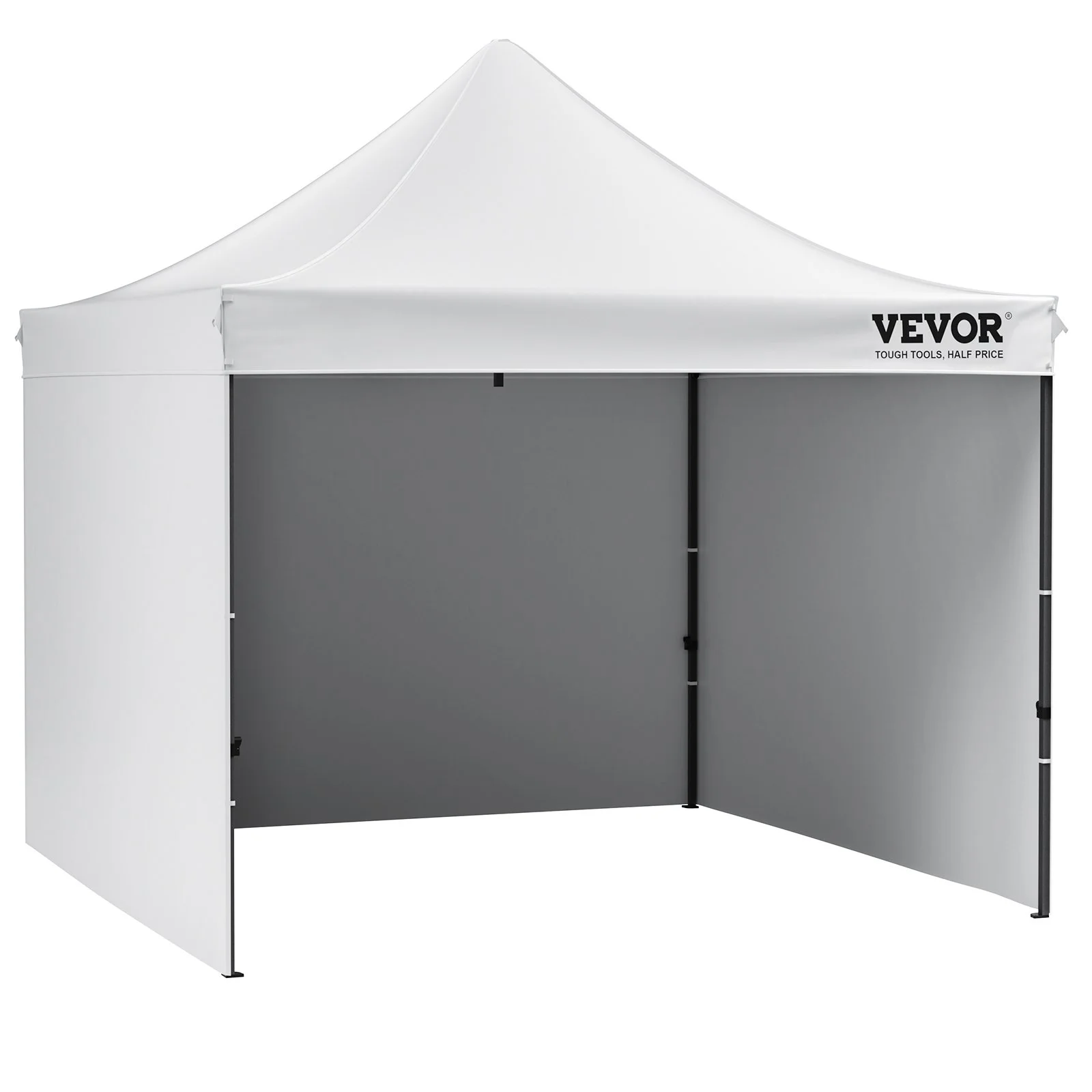 This 10x10 pop up canopy tent can be assembled in one minute, providing a temporary gathering place of 100 square feet. With three adjustable heights and a maximum internal height of over 9 ft, it offers a spacious standing room. This canopy with sidewalls comfortably accommodates 6-8 people, providing sun shade for a comfortable gathering.