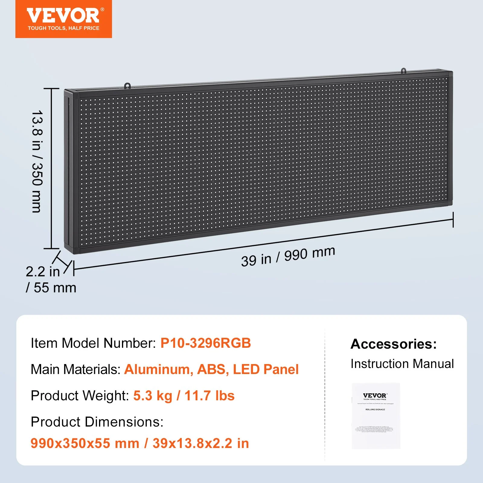This scrolling display board, with two hooks on the top, can be hung on a wall, whether at the top of a house or at the entrance of a shop, easy to install with nuts.