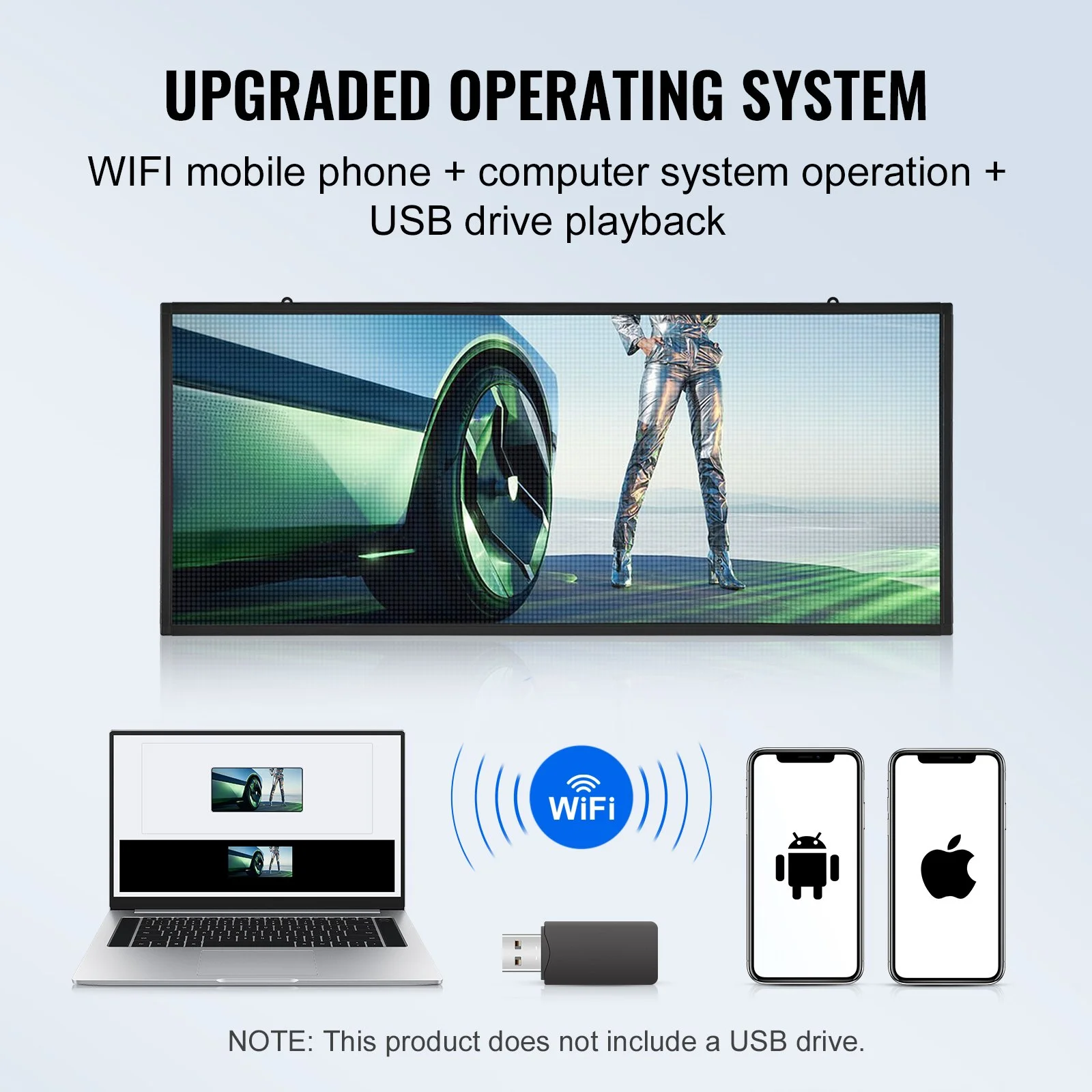 The scrolling led sign is simple to operate, just connect to a Windows computer and phone's WiFi (computer support is limited to Windows, while both Android and Apple phones are compatible) and use the software to freely edit advertising content. The instruction manual includes detailed operating instructions.