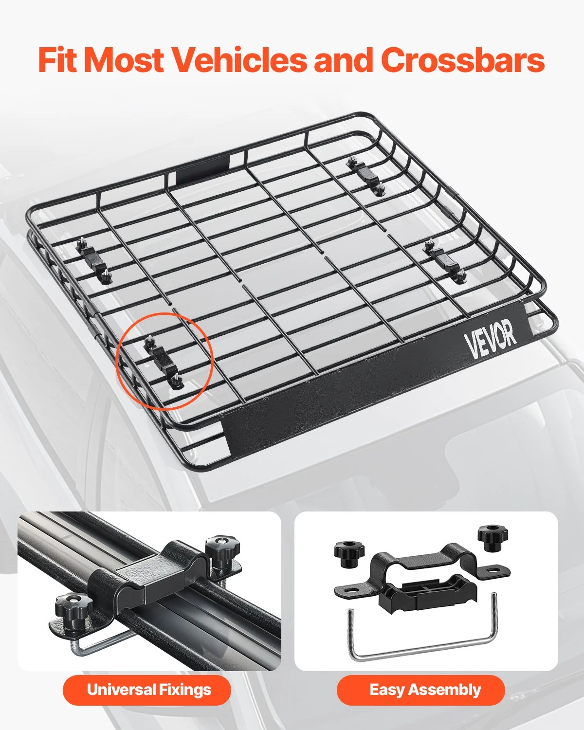 Easily installs on most vehicles and crossbars. The roof rack cargo basket mounts quickly with four universal U-bolts for fast setup and detachment
