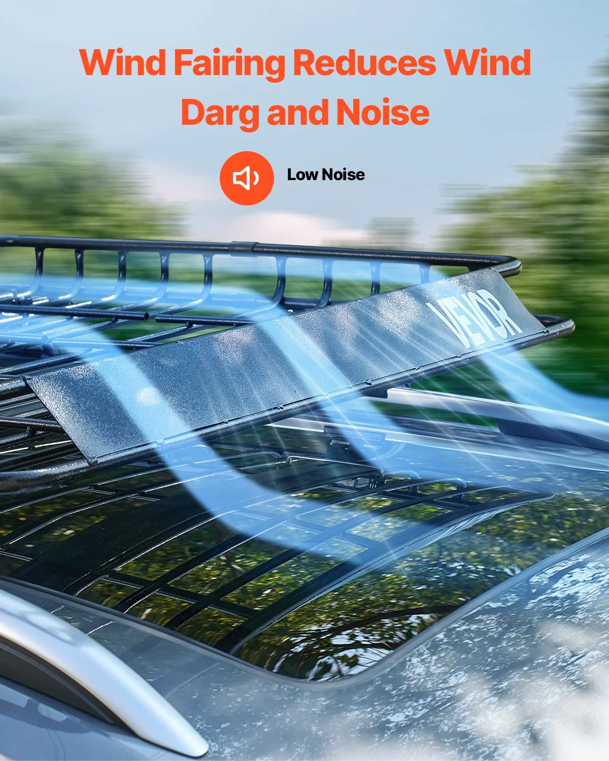 The 4.1-inch high fence features a slanted front panel that smooths airflow, reducing wind noise and drag. This car top luggage holder keeps your cargo from wind damage