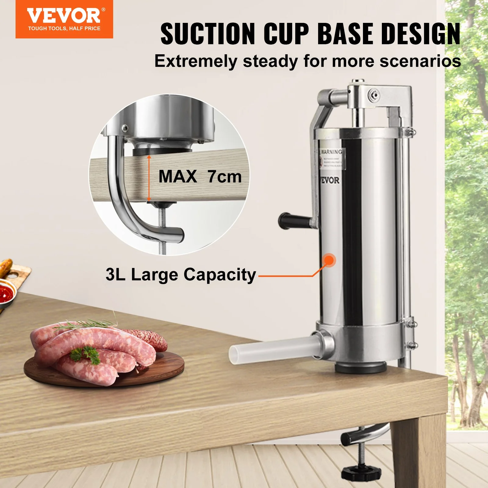 Equipped with a stainless steel cylinder with a capacity of 0.8 Gal / 3L, this manual sausage stuffer can hold a large amount of meat and make more sausages at one time, saving you time and effort.