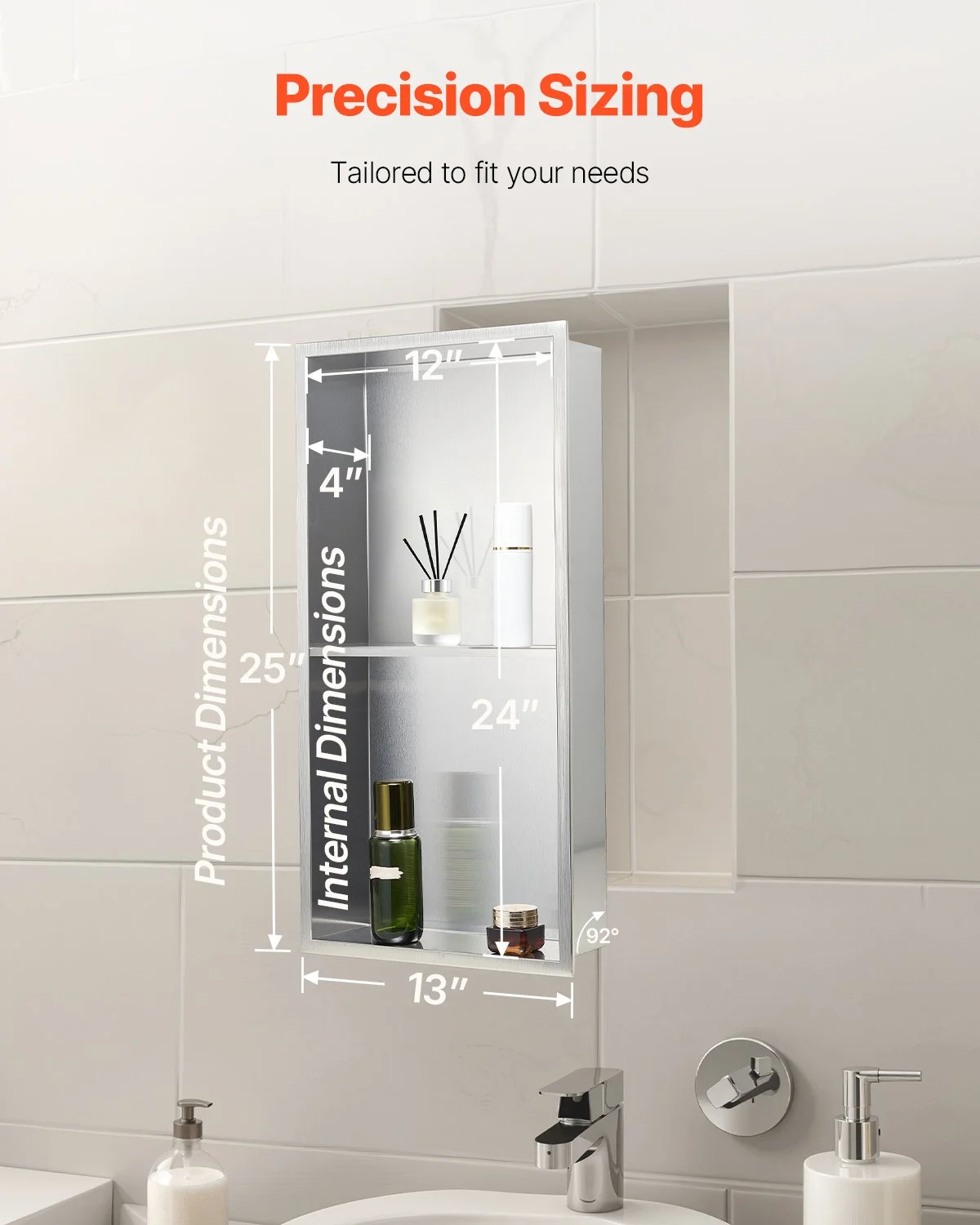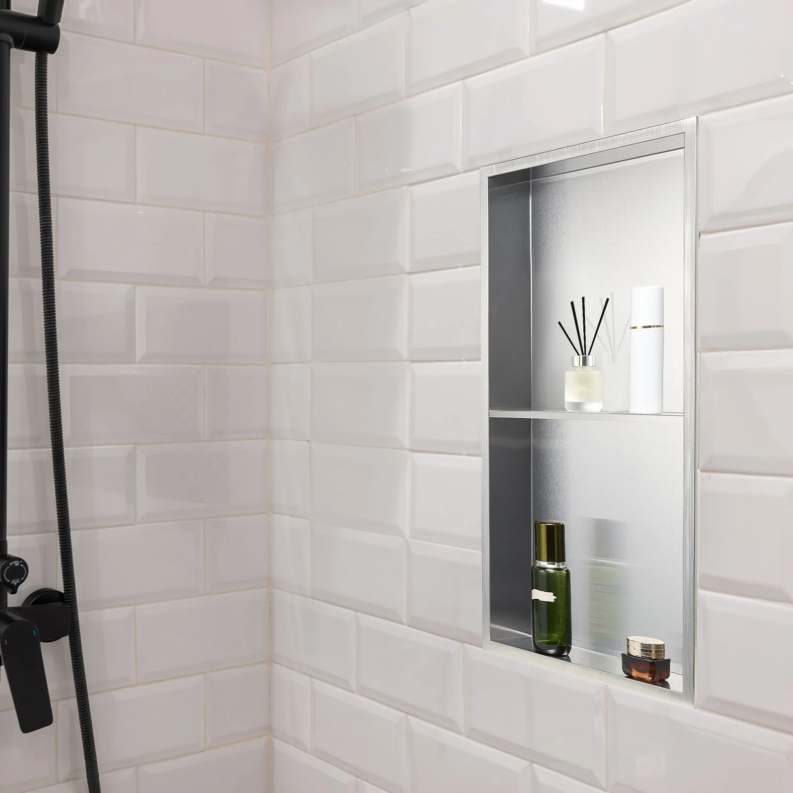 Made of premium 304 stainless steel, this tile niche is rust-resistant, fade-resistant, and durable. It’s ideal for humid bathroom. It maintains its appearance and performance for a long time without warping or damage.