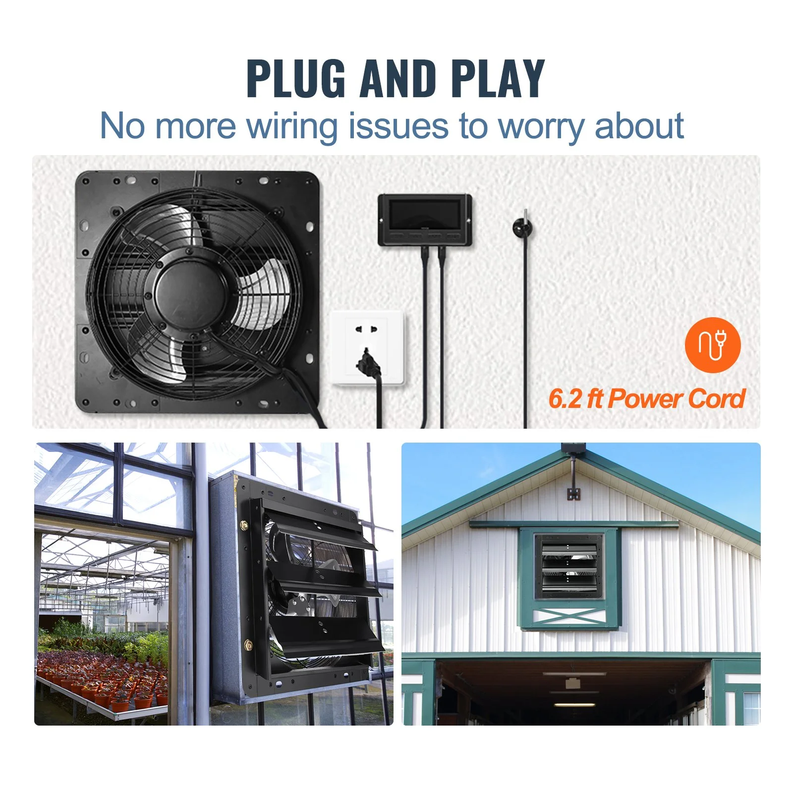 Operating at a low noise level, this wall exhaust fan can be effortlessly installed in garages, workshops, chicken coops, sheds, attics, greenhouses, offices, hospitals, and theaters. You only need to allow for the proper installation thickness to complete the setup.