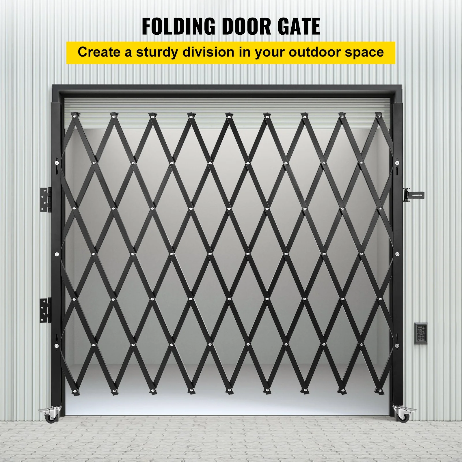 Designed with rolling casters in the bottom to swing up to 360 degrees and with lock designs to fix the position. The side-folding door can stay in an unobstructed clear-opening state or complete closed condition. Such a smoothing rolling security gate brings you convenient transport and storage.