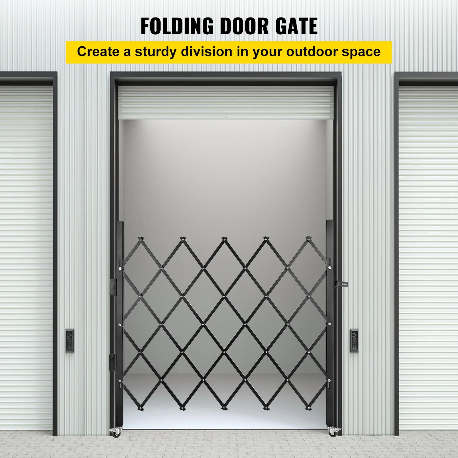 Designed with rolling casters in the bottom to swing up to 360 degrees and with lock designs to fix the position. The side-folding door can stay in an unobstructed clear-opening state or complete closed condition. Such a smoothing rolling security gate brings you convenient transport and storage.