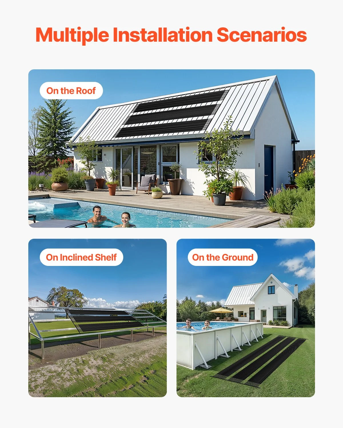 Our solar pool water heating systems are compatible with most pool types, including round, oval, and rectangular pools, providing consistent and long-lasting heating for residential use.