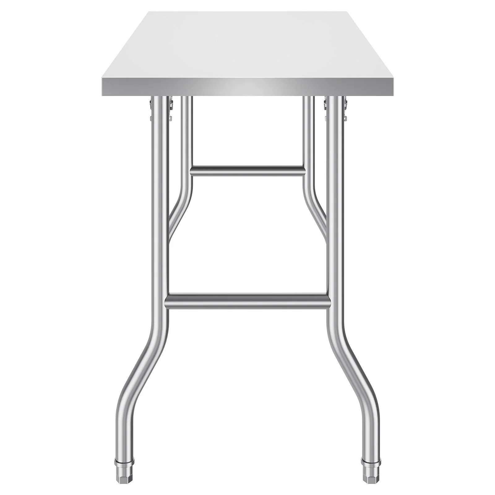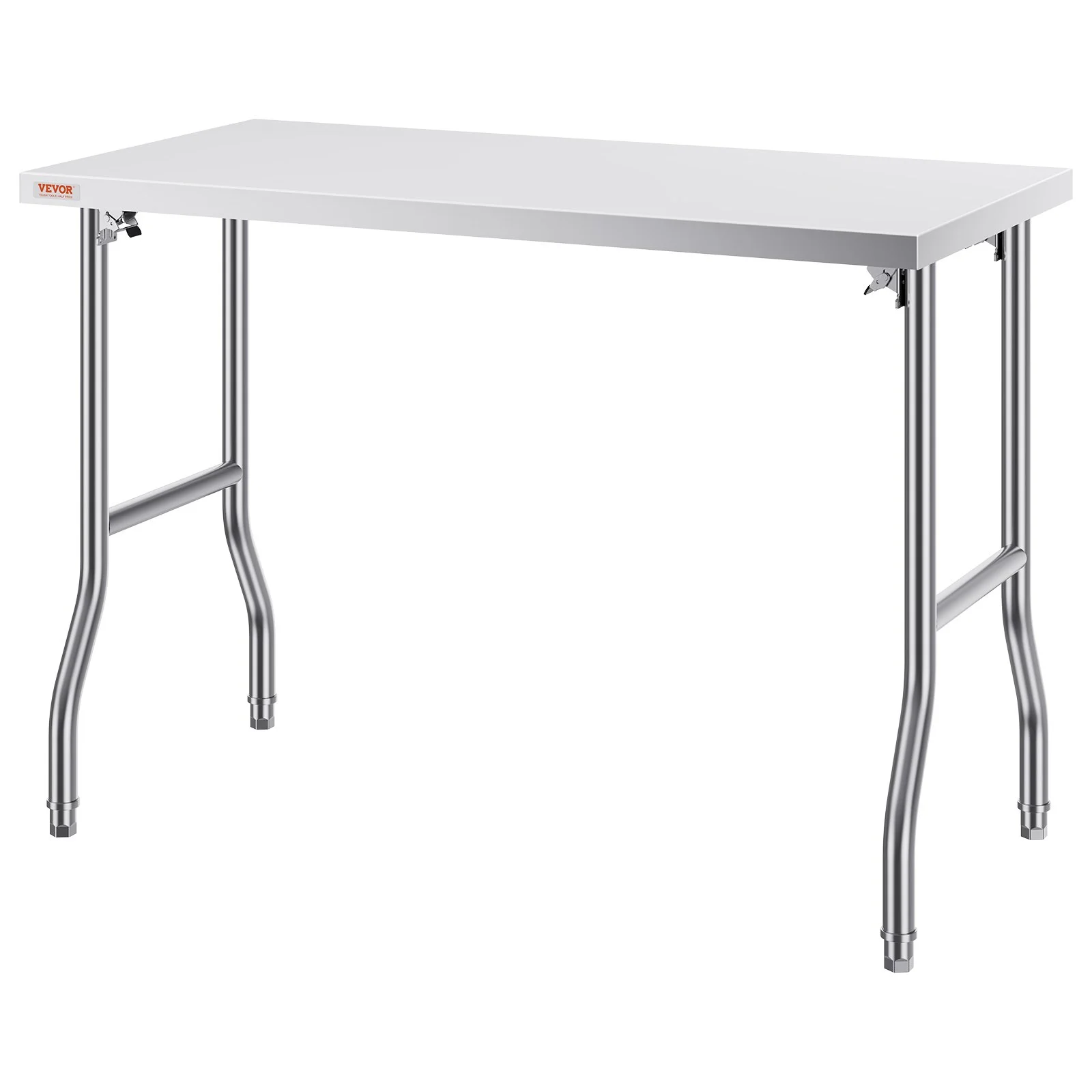 This stainless steel work table features an easy folding mechanism, making it convenient for both indoor and outdoor use. The four legs can quickly fold down, fitting easily into your trunk for transport to remote areas, and it can be easily stored when not in use. Ideal for outdoor activities.