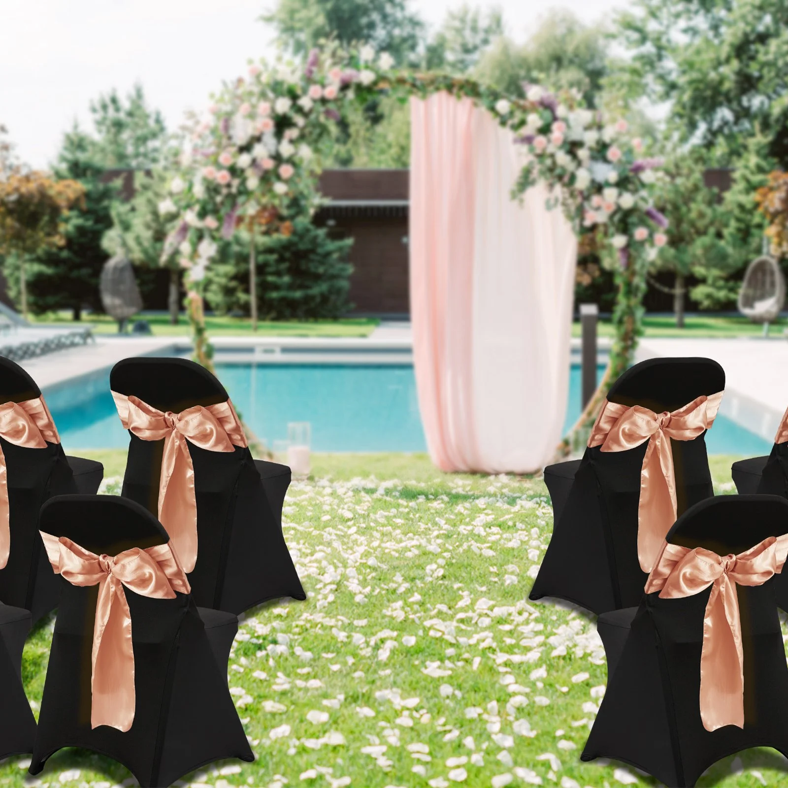 The spandex chair covers are more elastic, stretchable, and wrinkle-resistant, with reduced translucency. Four elastic pockets at the bottom are used for placing chair legs. The chair cover protectors securely hold them in place, providing all-around protection for your chairs. Furthermore, the sturdy pocket supports help extend the life of the covers, making them perfect for repeated use and resistant to tearing.