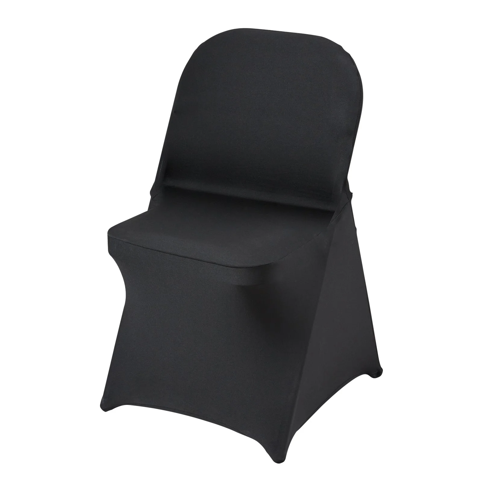 Color: Black; Quantity per box: 50 PCS; Material: 95% Polyester Fiber & 5% Spandex. Durable fabric and quality stitching offer additional comfort and elasticity. Universal spandex folding chair covers are designed to protect your chairs from accidental spills, pet scratches, everyday stains, and tears, making them ideal for both indoor and outdoor events.