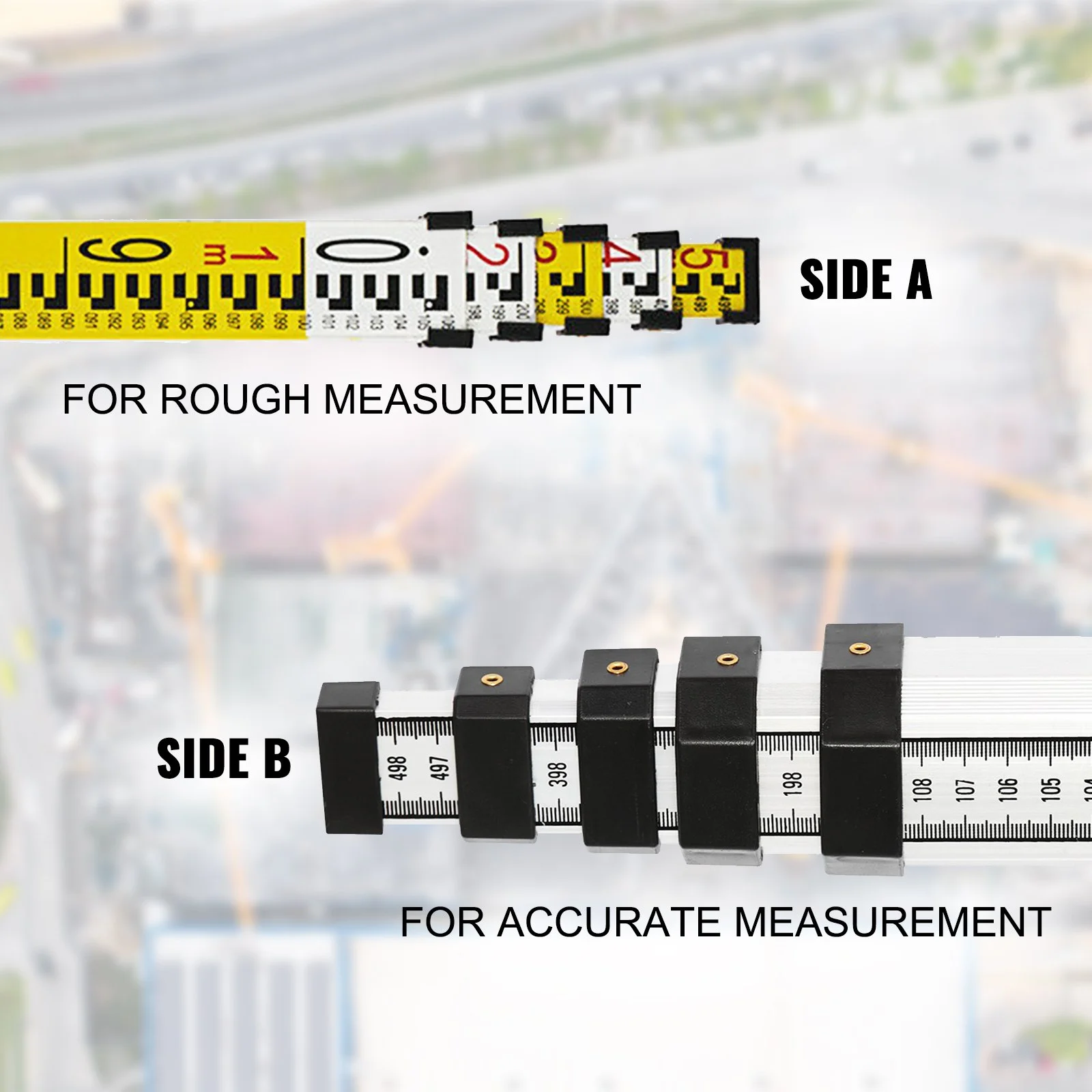 PRECISE MEASUREMENT - With five telescoping sections, our telescoping rod provides enough length, up to 16.4 ft/5 m, to meet your different measurement needs. The rod is designed with a dual-sided scale in metric and stored in a robust carrying bag.