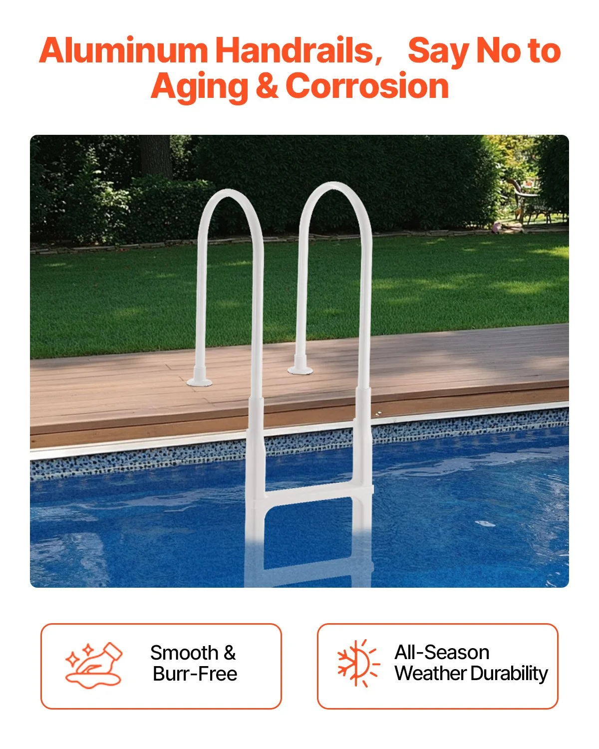 This pool ladder features 4 steps and double handrails on both sides. The steps are designed with textured patterns to ensure secure entry and exit, even underwater, helping prevent slips and accidents, ideal for 48-54 inches in-ground and above-ground pools