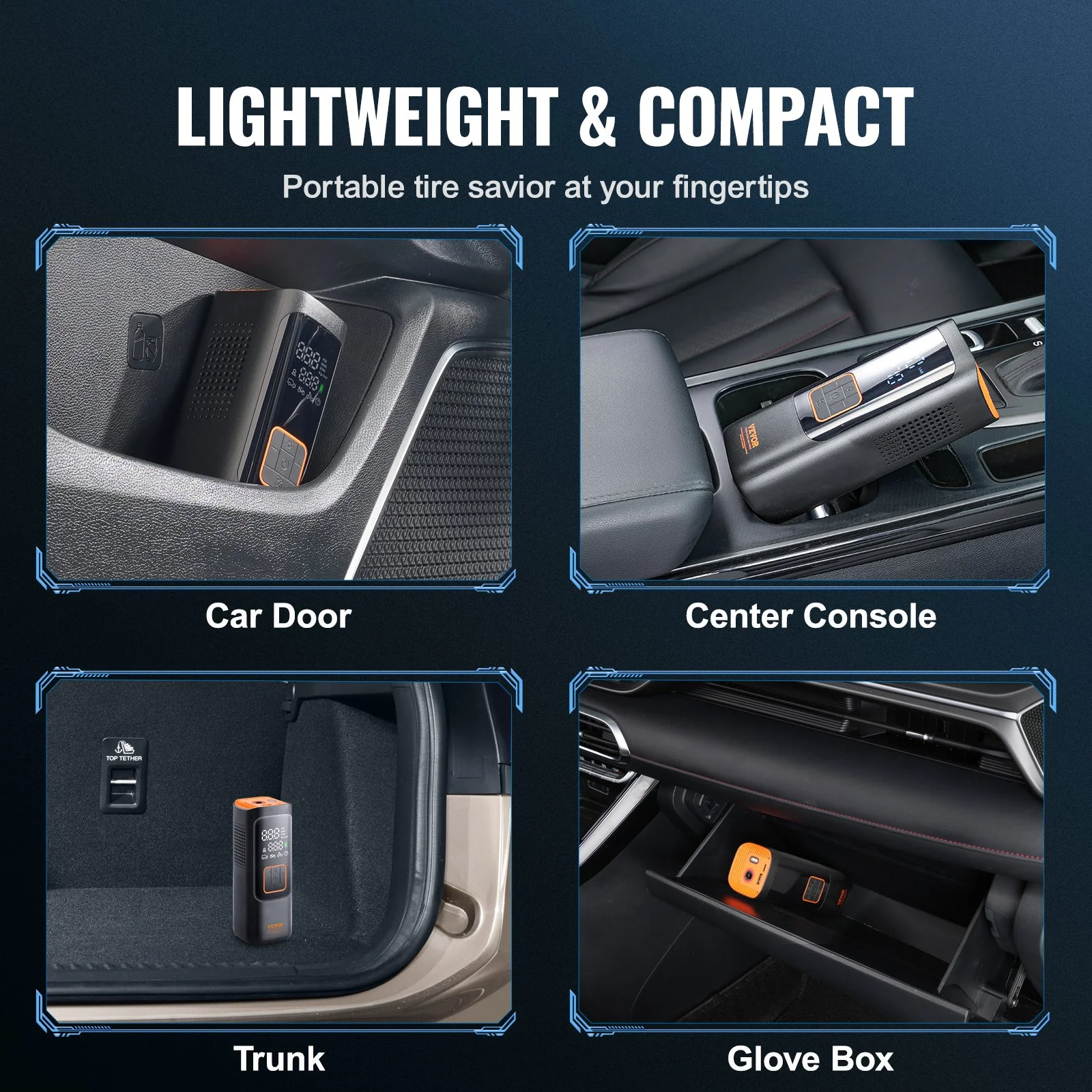 Get back on the road in a flash with VEVOR portable tire inflator's lightning-fast inflation. With 19 cylinders, 160PSI max pressure and boosted power, it inflates 2X faster than others. Only 1 minute to inflate a 205/55 R16 tire from 80% to100% pressure.