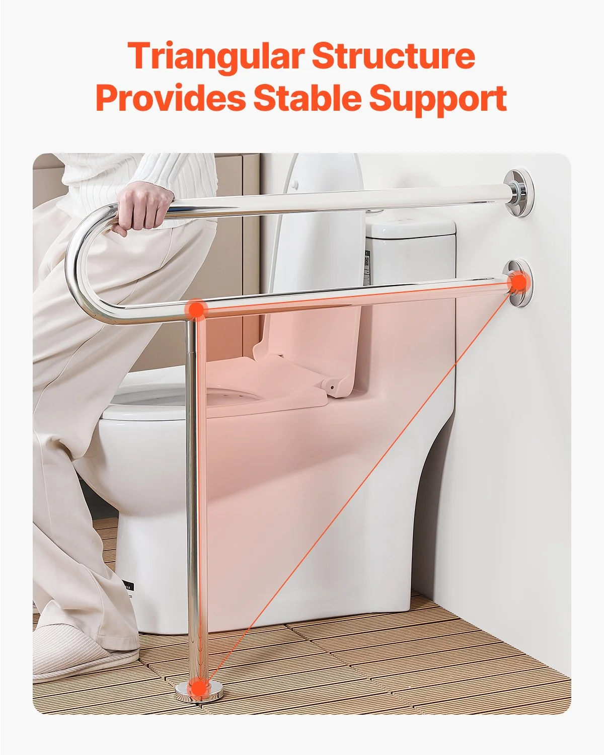 Our senior safety pole is designed with a T-shaped structure, maintaining a triangular stability. When under load, it evenly distributes force both horizontally and vertically, ensuring more stable, long-lasting, and secure support