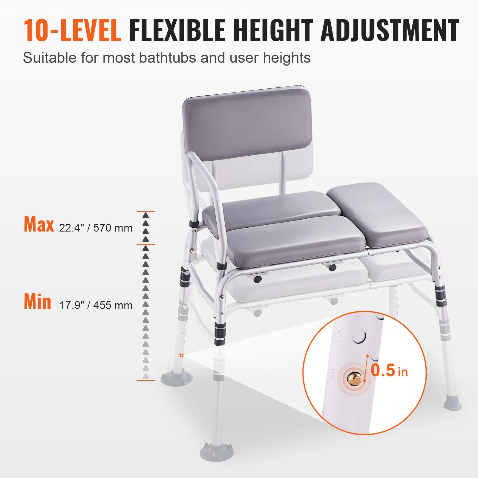 Struggling to get in and out of the tub? VEVOR tub transfer bench for bathtub, designed with padded seat, reversible backrest and wide armrest, provides stable support for entering and exiting the tub, making your bathroom experience safer and more comfortable. Perfect for elderly, disabled, handicapped or post-surgical.