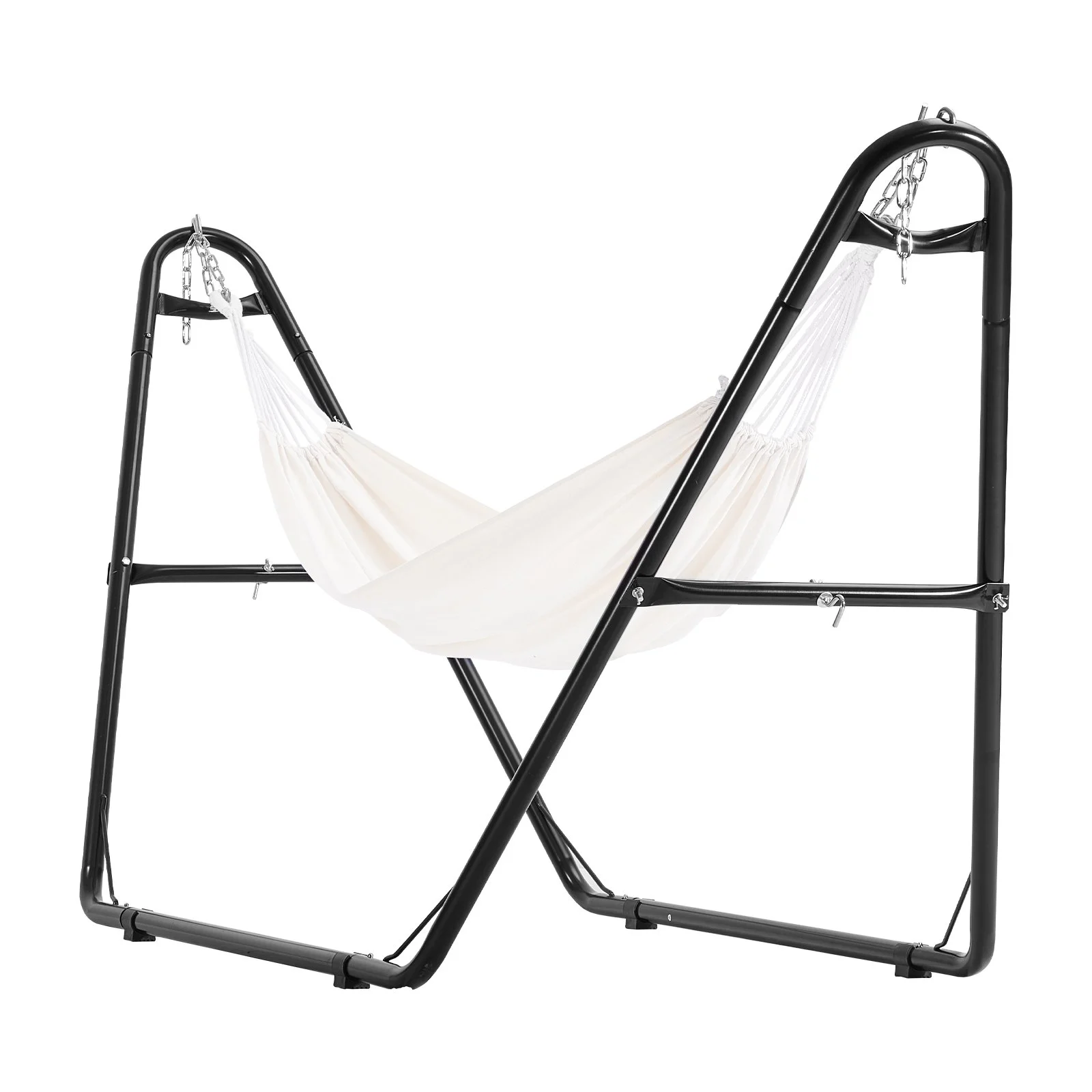 Our hammock frame allows you to adjust the hammock's tightness and height to your preference. It comes with two adjustable chains that make it easy to set the desired length. Note: Hammock not included.