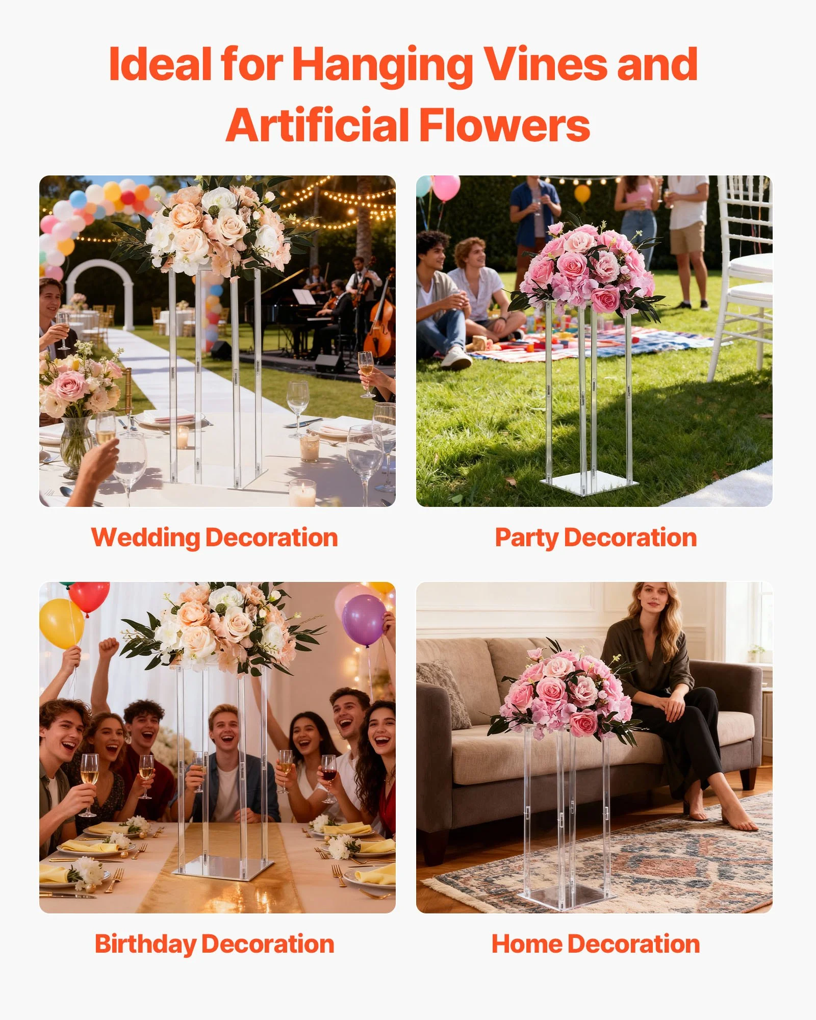 Equipped with full accessories, this tall flower stand ensures a fast and stable assembly process. No additional parts are needed, making it simple for anyone to set up, perfect for weddings, parties, birthdays, or home decoration