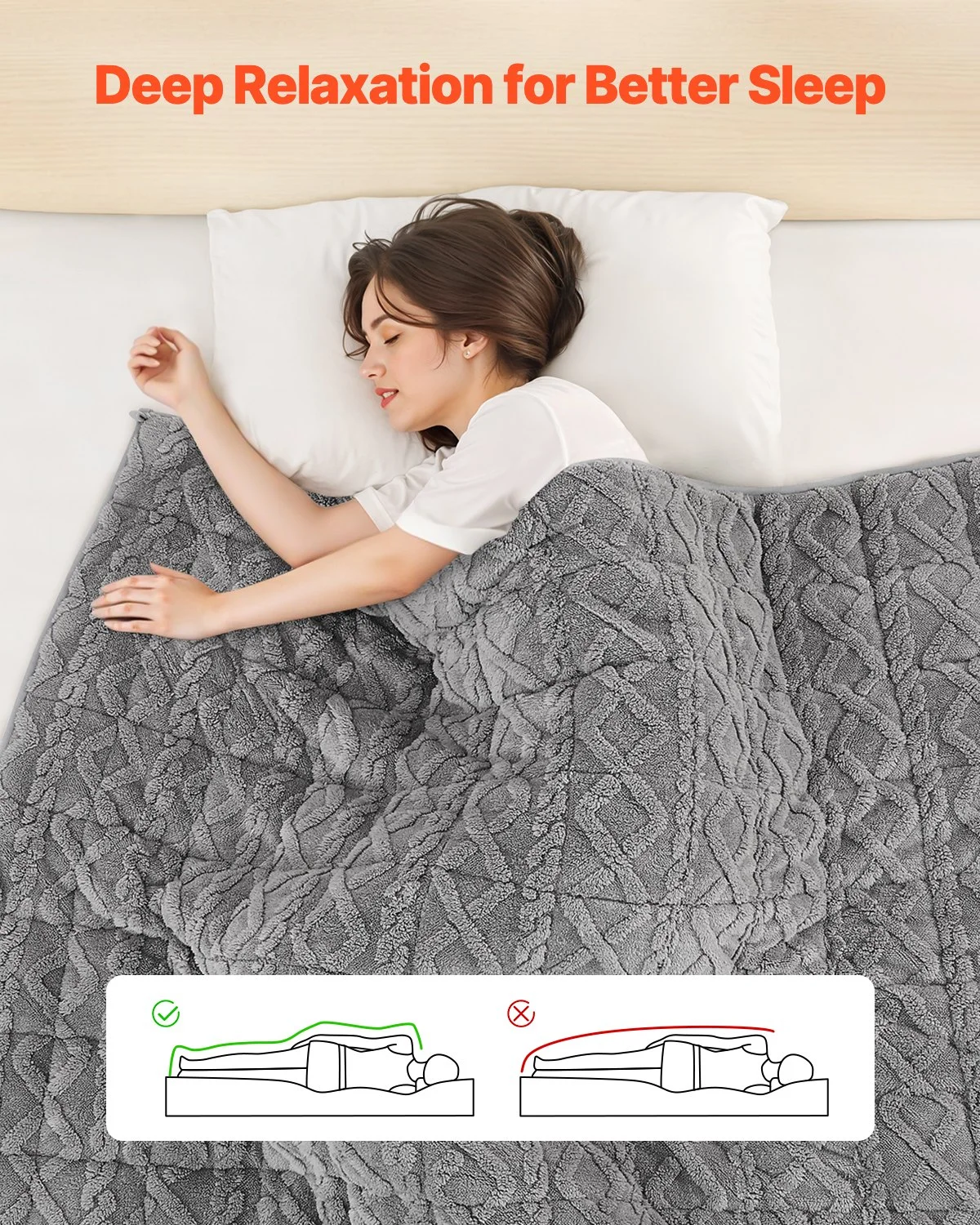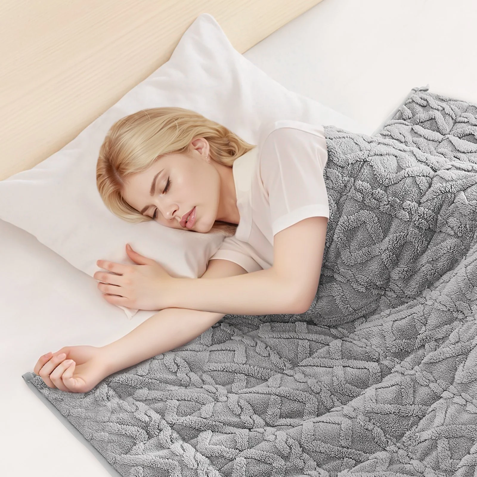 Our heavy blanket provides gentle pressure, like a soothing hug, helping you relax and fall asleep faster. Many users report feeling calmer and sleeping better after use.