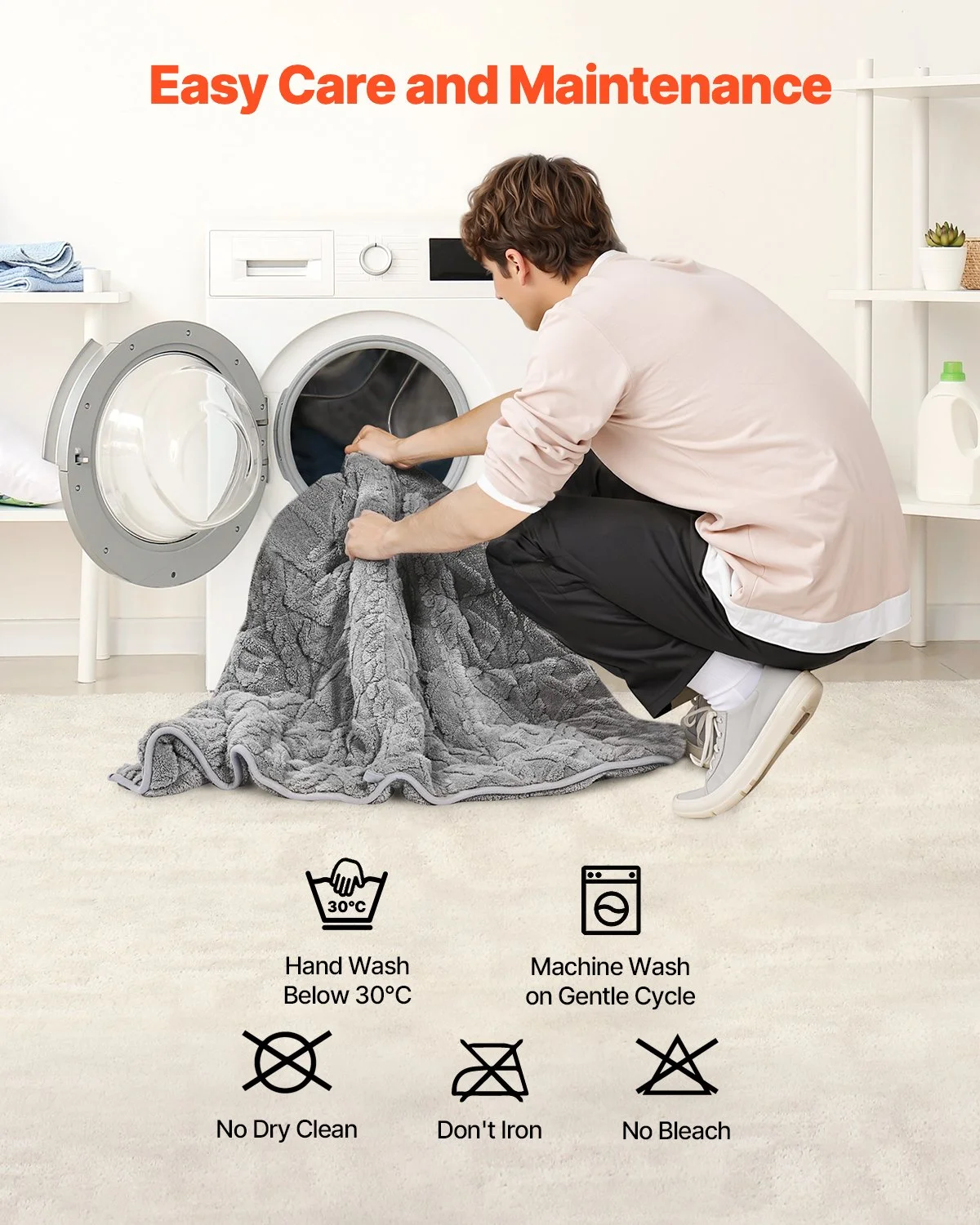 Made with soft sherpa and jacquard fleece and OEKO-TEX certified, our washable weighted blanket is gentle on the skin and contains no harmful substances, ensuring a peaceful sleep.
