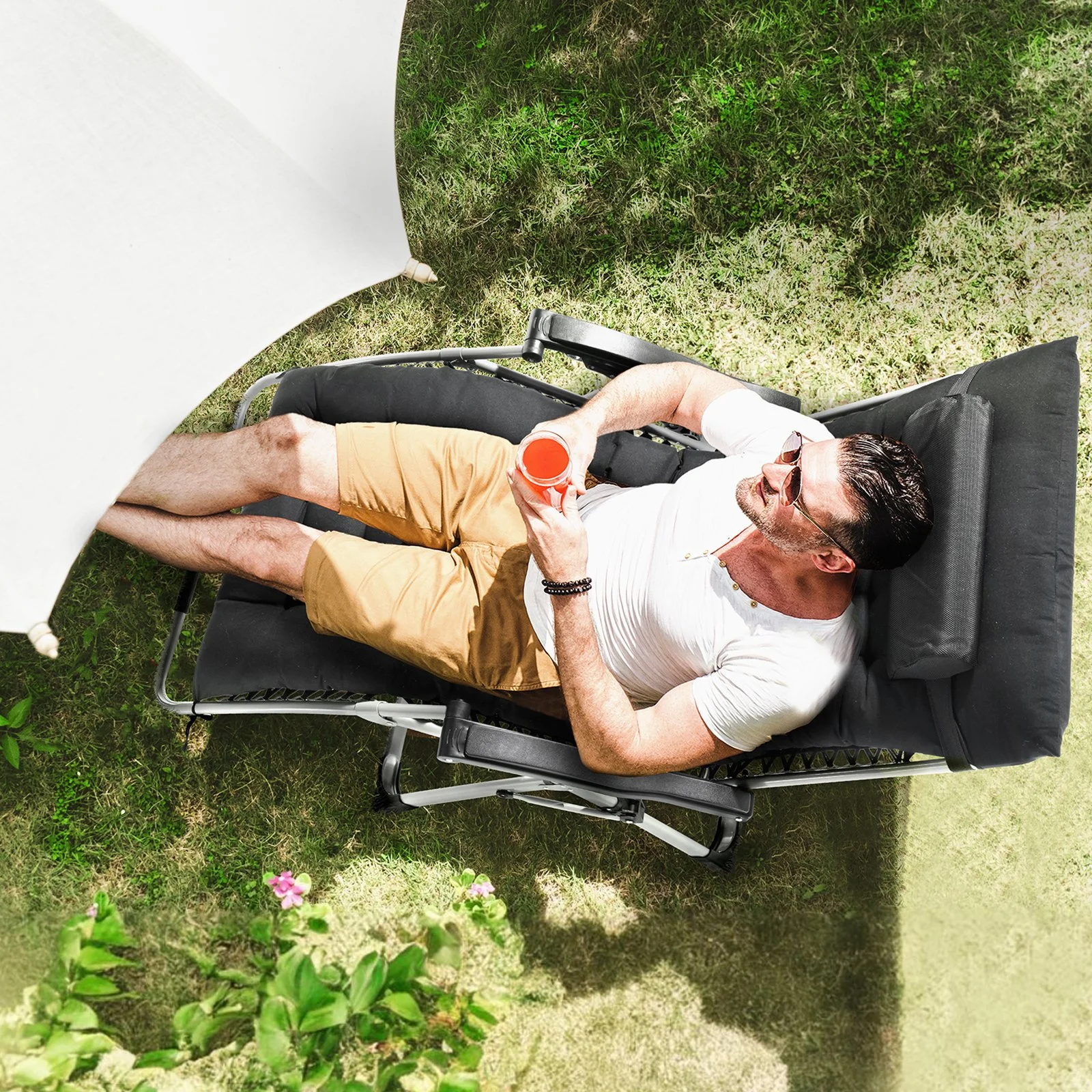 Featuring a robust triangular frame, reinforced square steel tubes, 8mm aluminum locks, and double-layer elastic cords, this 33" zero gravity chair offers exceptional stability and supports up to 500lbs. Ideal for users of all sizes.