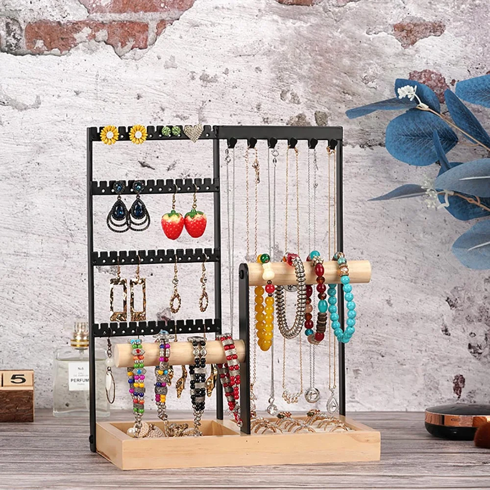 Iron Desktop Earrings Display Organizer Jewellery Stand Holder for Home Storage - Black