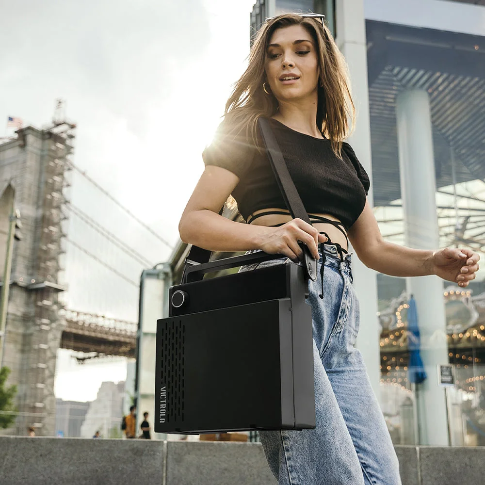 Victrola Revolution Go Turntable - Black + Bundled Record Storage Crate - Introducing the award-winning Victrola Revolution GO, the world's pioneering portable, rechargeable Bluetooth¨ record player. With its battery-powered design, the Revolution GO lets you enjoy your vinyl collection wherever you go.