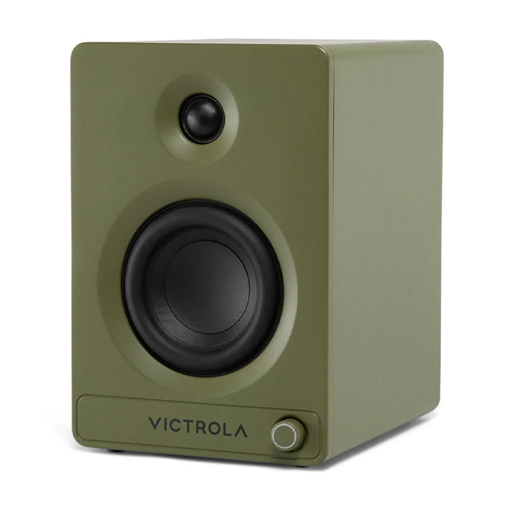 The Victrola Tempo Bookshelf Speakers - Green are the perfect fusion of timeless style and modern performance, designed to elevate your audio experience. Thoughtfully crafted to match Victrola’s popular turntables — including the Wave, Automatic, and Stream Onyx — these speakers bring visual harmony and sonic excellence to your listening setup. Whether you're enjoying the warmth of vinyl or the convenience of digital streaming, the Tempo Speakers deliver powerful, balanced sound in a sleek, space-saving design.