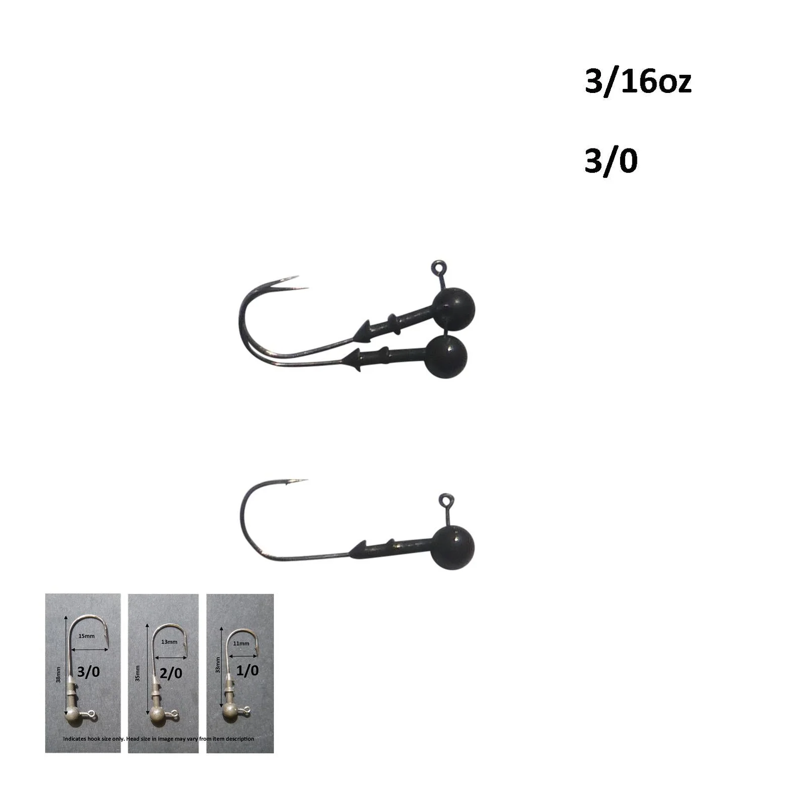 Vike 3/16 oz Round Jig Head with a Size 3/0 Hook Tungsten, 3 pack