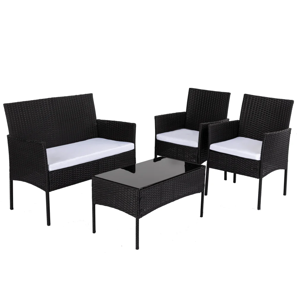 Want a perfect outdoor rest suit? This four piece outdoor furniture is equipped with a double sofa, two armchairs and a table. It is exquisite, beautiful, practical and durable, and is worth starting with. This set of products can resist all kinds of bad weather, with excellent UV resistance and waterproof performance, and is equipped with a high-strength anti rust powder coating frame, suitable for year-round use.