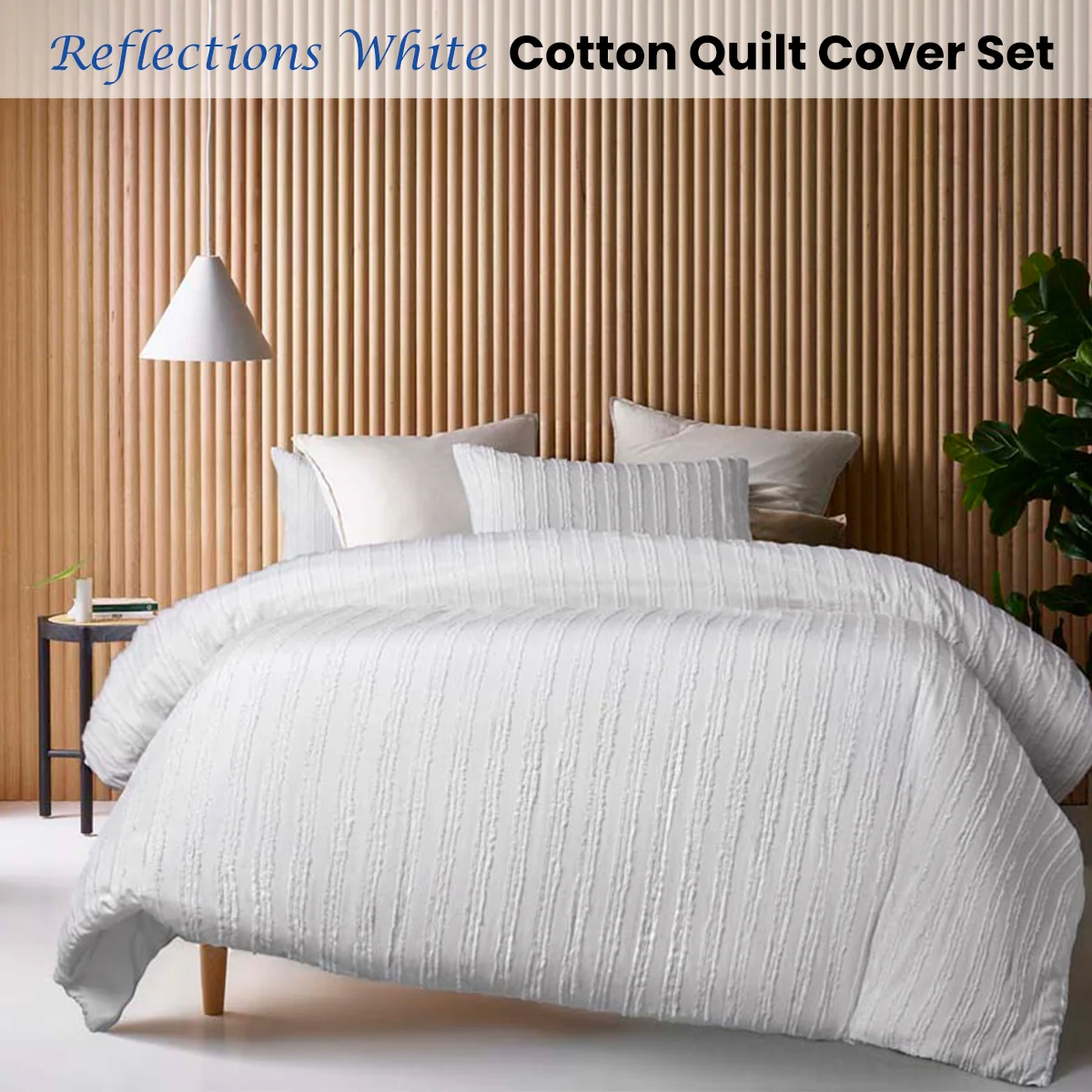 Change the look of your bedroom by adding some texture with the Reflections White Cotton Quilt Cover Set by Vintage Design Homewares. This quilt cover set is made from 100% cotton, keeping you comfortable all night long. Our design features chenille stripes running down the quilt cover and pillowcases adding that chic, minimalist style.