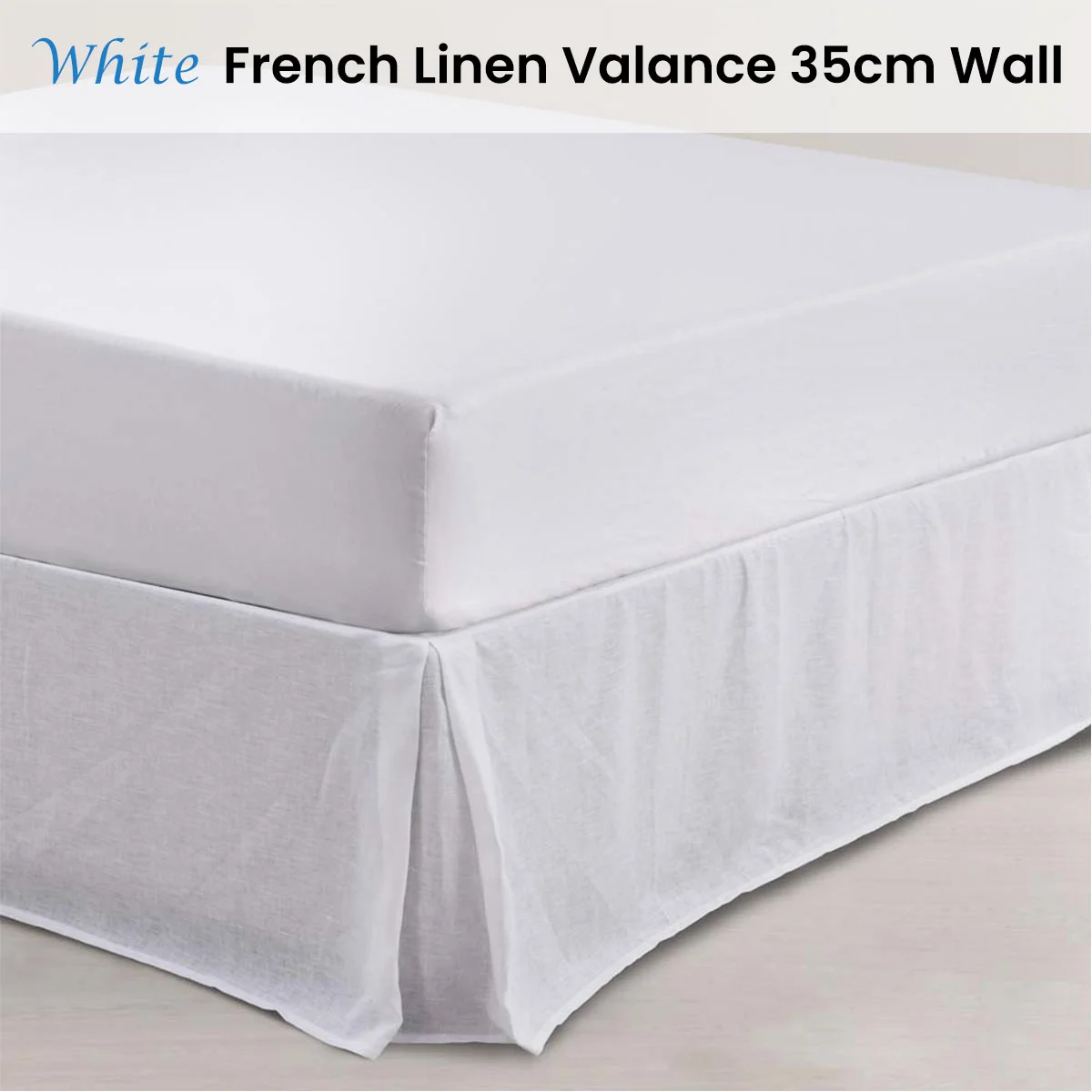 Finish your bed off with White French Linen Valance 35cm Wall by Vintage Design Homewares. Our valances fit over your bed base and fall naturally to the floor with folds at each corner. This is a timeless bedding essential that will look beautiful for years to come. Made from Linen fabric.
