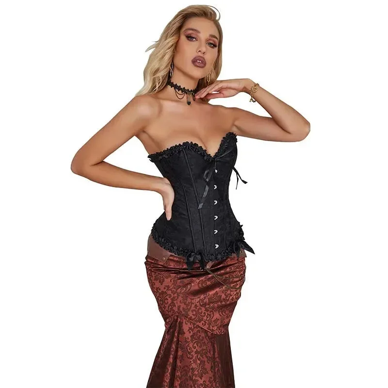 Black Lace-Up Ruffled Corset Bustier Plus Size S-6Xl - M