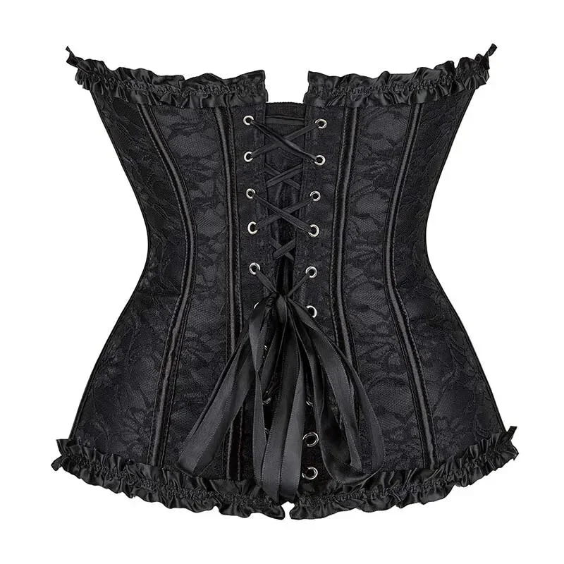 Black Brocade Lace-Up Halter Corset Plus Size Vintage Gothic Corselet - Xxxl