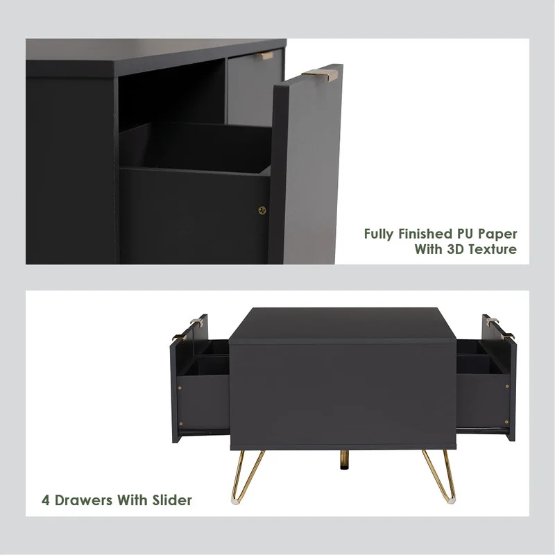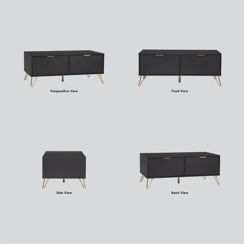 Volos coffee table in Gold colour metal leg, Black colour top