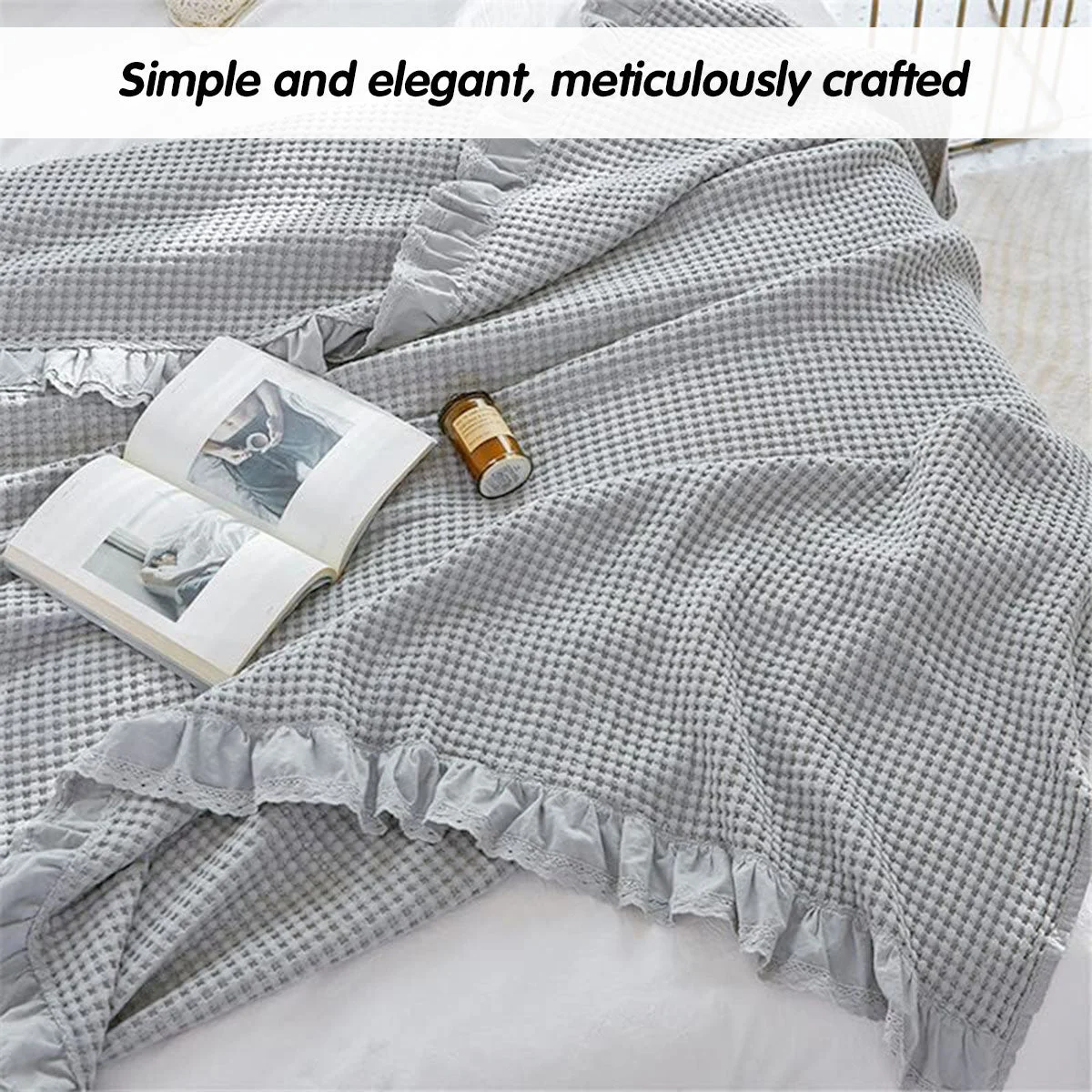 Enjoy breathable comfort with this Japanese-style waffle weave blanket made of 100% cotton.Designed with a soft honeycomb texture and elegant ruffled edges, this lightweight blanket offers excellent airflow and skin-friendly warmth.Ideal as a sofa throw, nap cover, or summer bed layer, it provides relaxed cosiness for year-round use.