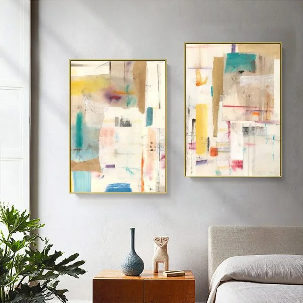 Wall Art 90cmx135cm Neutral Composition 2 Sets Gold Frame Canvas