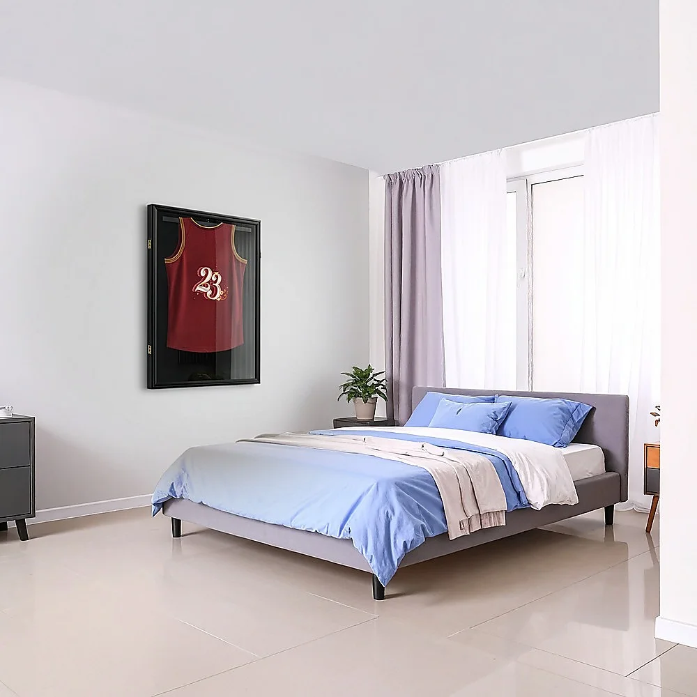 Ideal for both storage and showcasing, this product is designed to safely preserve and exhibit your cherished sports memorabilia. It is perfectly suited for a wide range of jerseys, whether they belong to your beloved basketball team or soccer club. The UV resistant door ensures excellent transparency while providing protection against sun damage and dust accumulation. With a hinged door for smooth opening and closing, as well as a secure latch, your memorabilia remains safe and secure. The soft plush interior minimizes the risk of damage to your jerseys. The package includes a hanger and hanging hooks, making it convenient to set up. No assembly is required, allowing you to enjoy your display case right away. Please note that the jersey itself is not included.