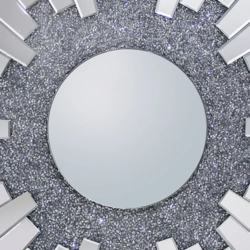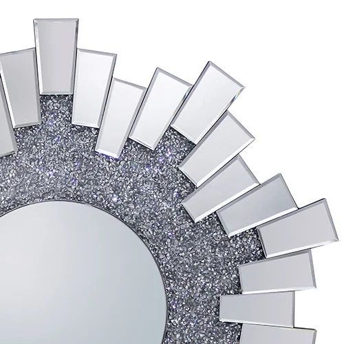Wall mirror is made of high quality MDF and Glass. MDF ensures strong construction while the high quality glass provides clear and undistorted image. Moreover, crush crystal is adorned all over its body. This creates a sparkling ambience all over it.