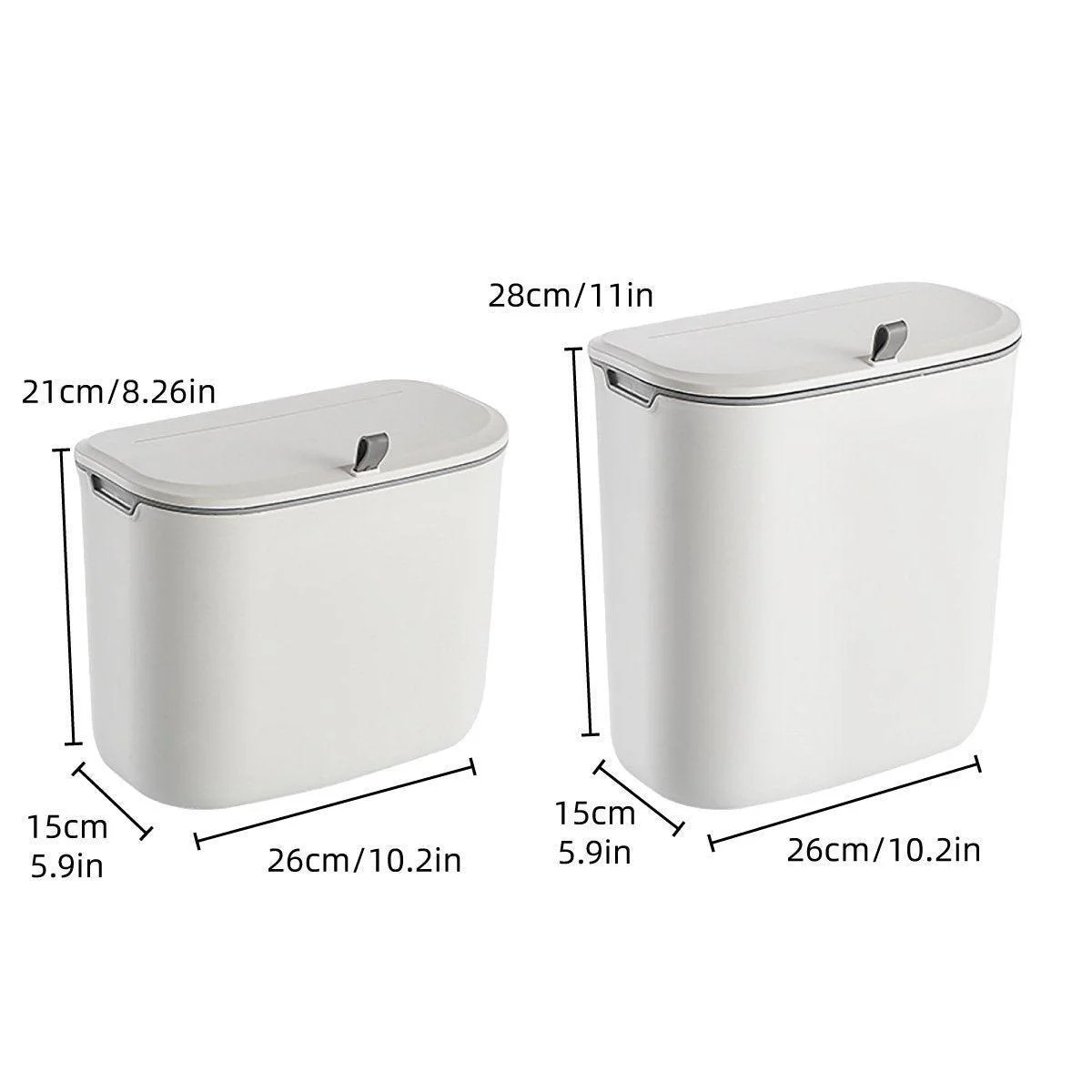Maximize kitchen space and maintain cleanliness with our Wall-Mounted Wastebasket. Featuring a sliding lid, this hanging wastebasket is perfect for small kitchens, workspaces, or any area where space is at a premium. It's designed to fit snugly against the wall or cabinet door, making refuse disposal convenient and effortless.