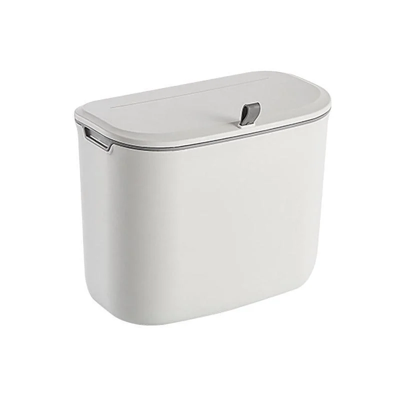 Wall Mounted Hanging Waste Bin with Lid Household Cabinet Trash Can Cream White