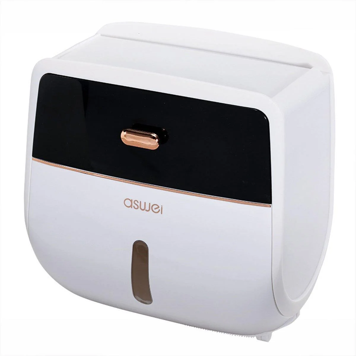 Upgrade your bathroom with this sleek and functional waterproof toilet paper holder. Designed for wall mounting with a non-perforated installation, it requires no drilling, preserving your walls. The secure, waterproof enclosure keeps tissue dry and protected, making it ideal for humid bathroom environments. This tissue box also features a convenient top shelf to hold small items such as a phone, plant, or other accessories. Built with durable, high-quality materials, it ensures long-lasting use while adding a stylish touch to your bathroom decor.