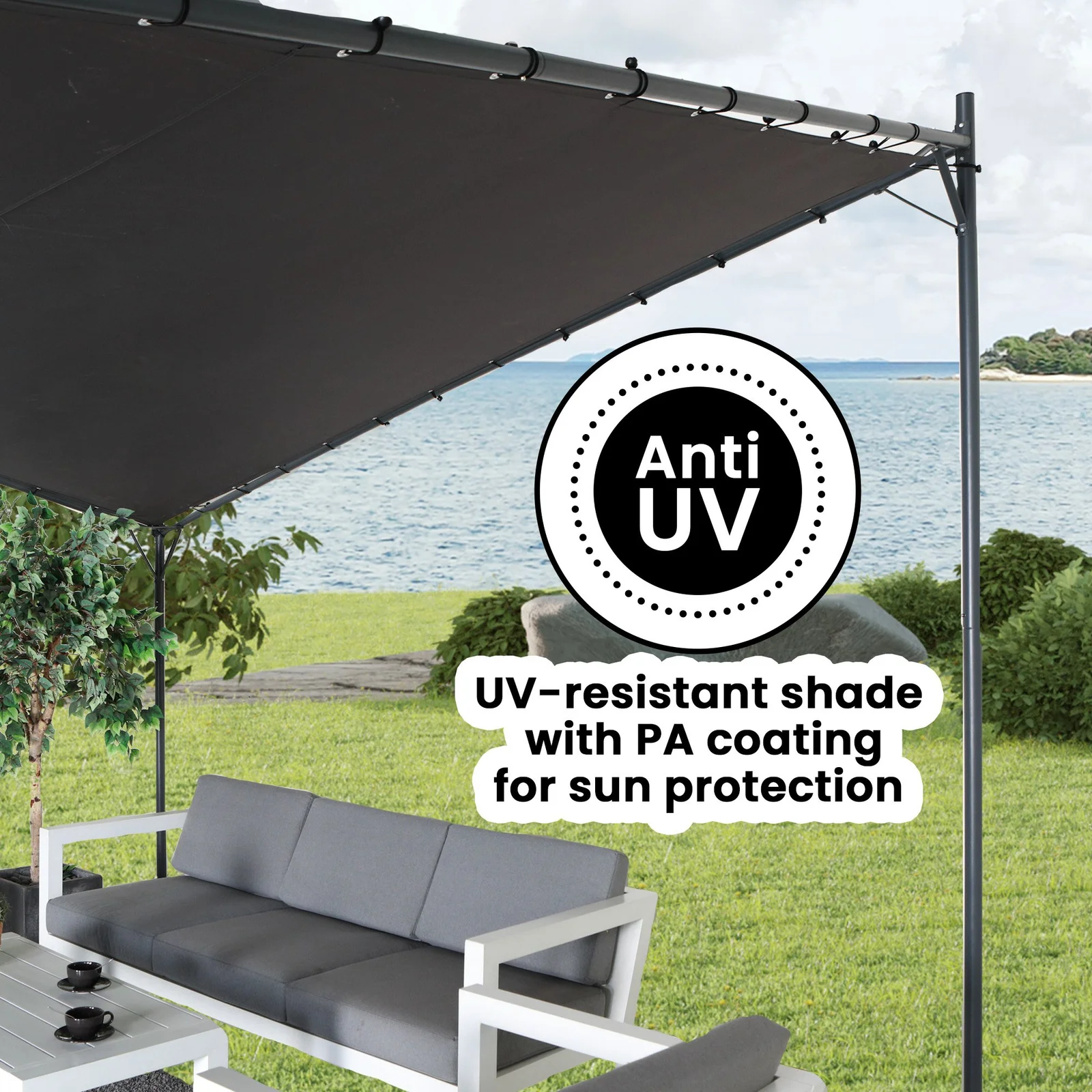 Featuring an innovative and beautiful butterfly design, the Sarantino Butterfly Gazebo provides an angled shade for your outdoor space. Relish in its durable construction, courtesy of its sturdy steel frame finished with a sophisticated yet practical charcoal powder coating. And for your peace of mind, this gazebo offers protection with its PA-coated polyester shade, boasting a UPF 50+ rating to keep yourself protected from the intense Aussie heat!