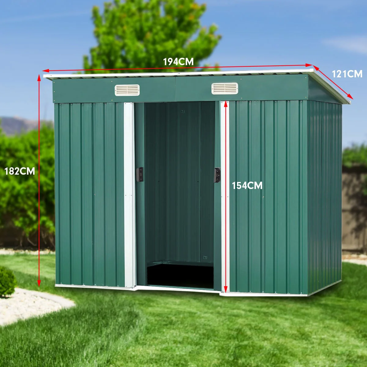 Constructed from galvanized steel and polypropylene this sturdy shed is weather and rust-resistant and designed to withstand the harshest weather elements. It features ventilation vents to let in air and natural light.