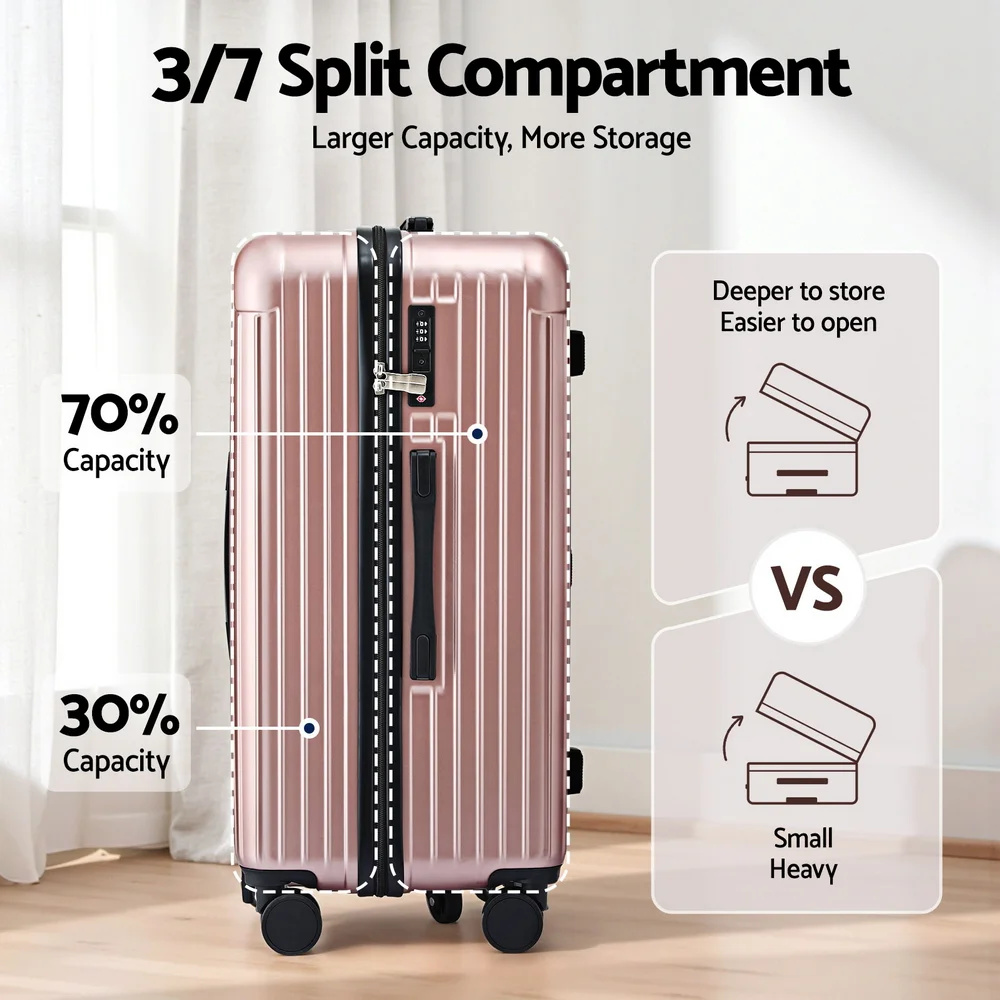 Wanderlite Trunk Luggage makes packing a dream, not a chore. With its innovative 3/7 split compartment, you'll conquer clutter, while built-in USB & Type-C ports keep you charged on the go. Glide effortlessly with reinforced 360�� spinner wheels and rest easy knowing your gear is safe thanks to the TSA lock and durable ABS shell. Plus, a hidden wet compartment keeps everything fresh.