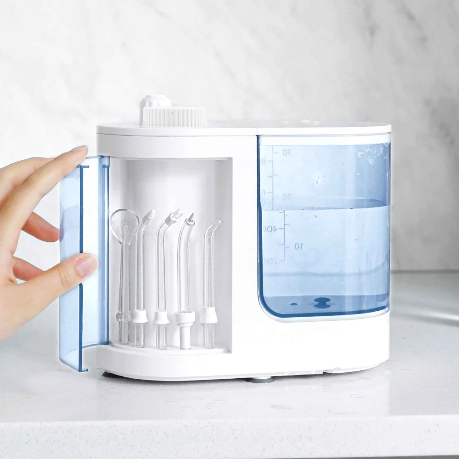 This dental water flosser is an essential dental care device for every family. It can clean deep between and below the gum-line and help keep you orally healthy with its high frequency pulses of water.