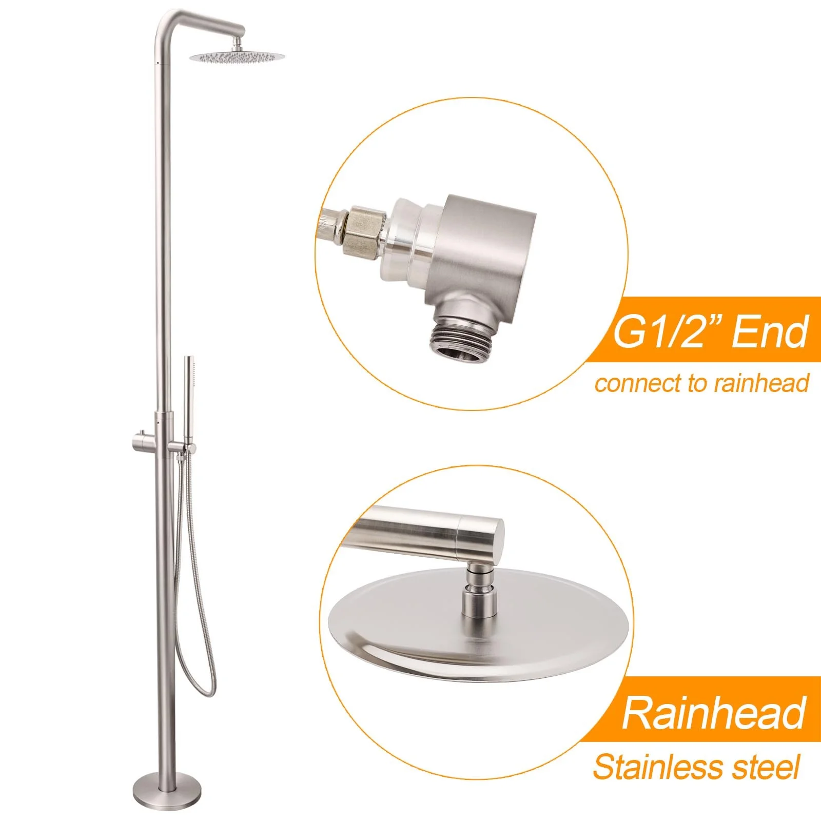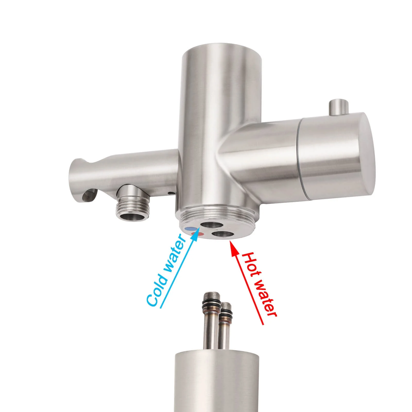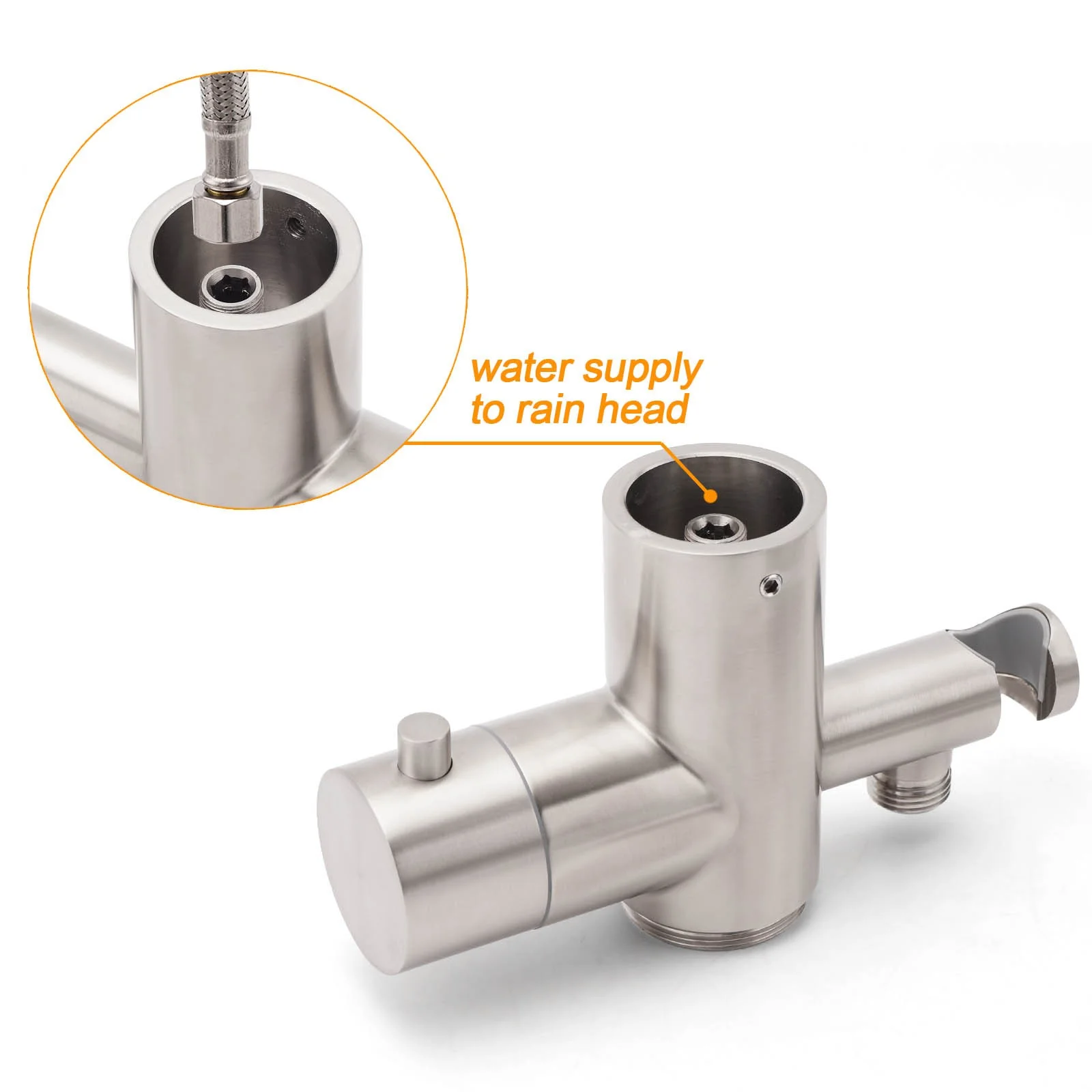 - Material: Stainless steel in rail, stainless steel in shower holder, brass in diverter