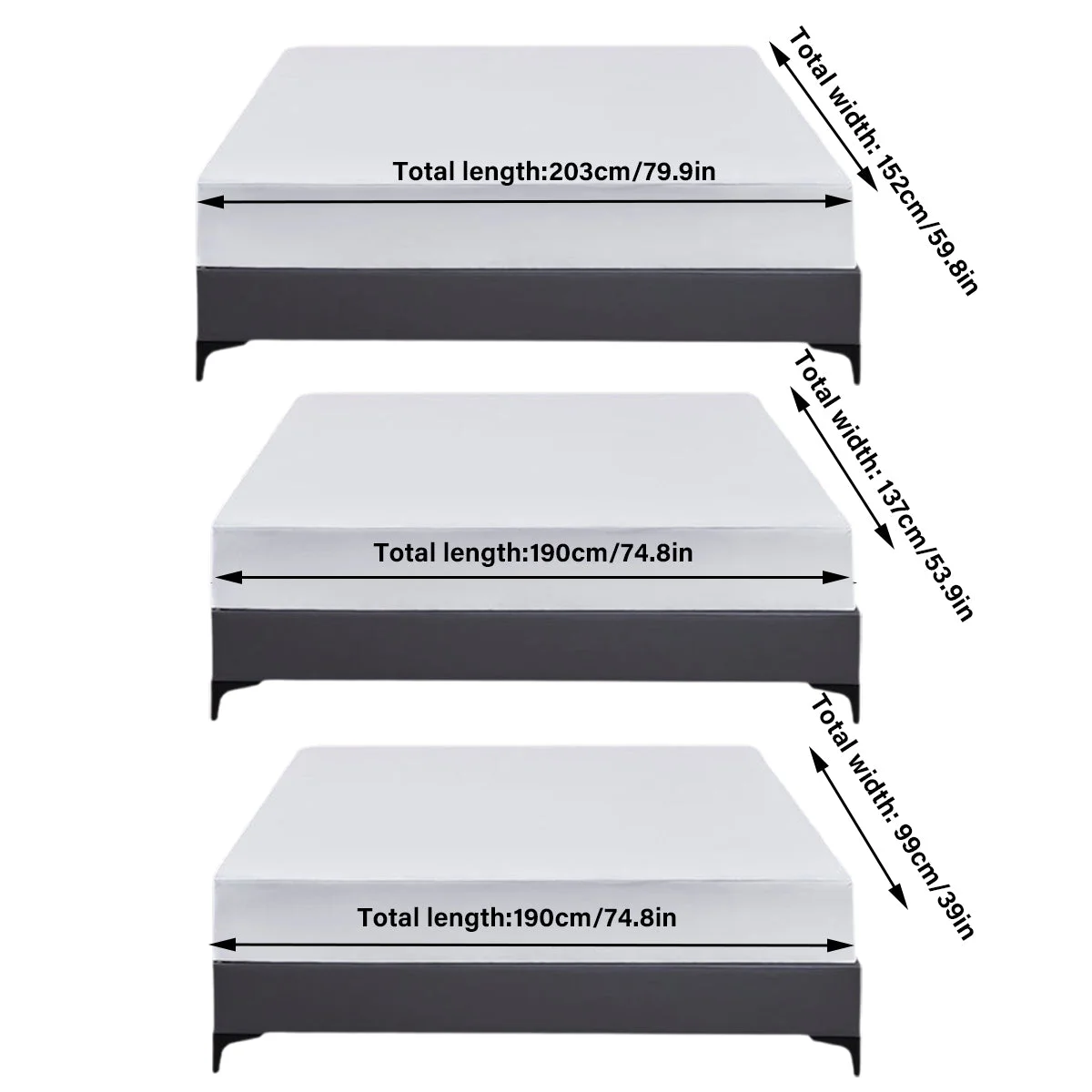 Sizes:99 x 190 cm 137 x 190 cm 152 x 203 cm